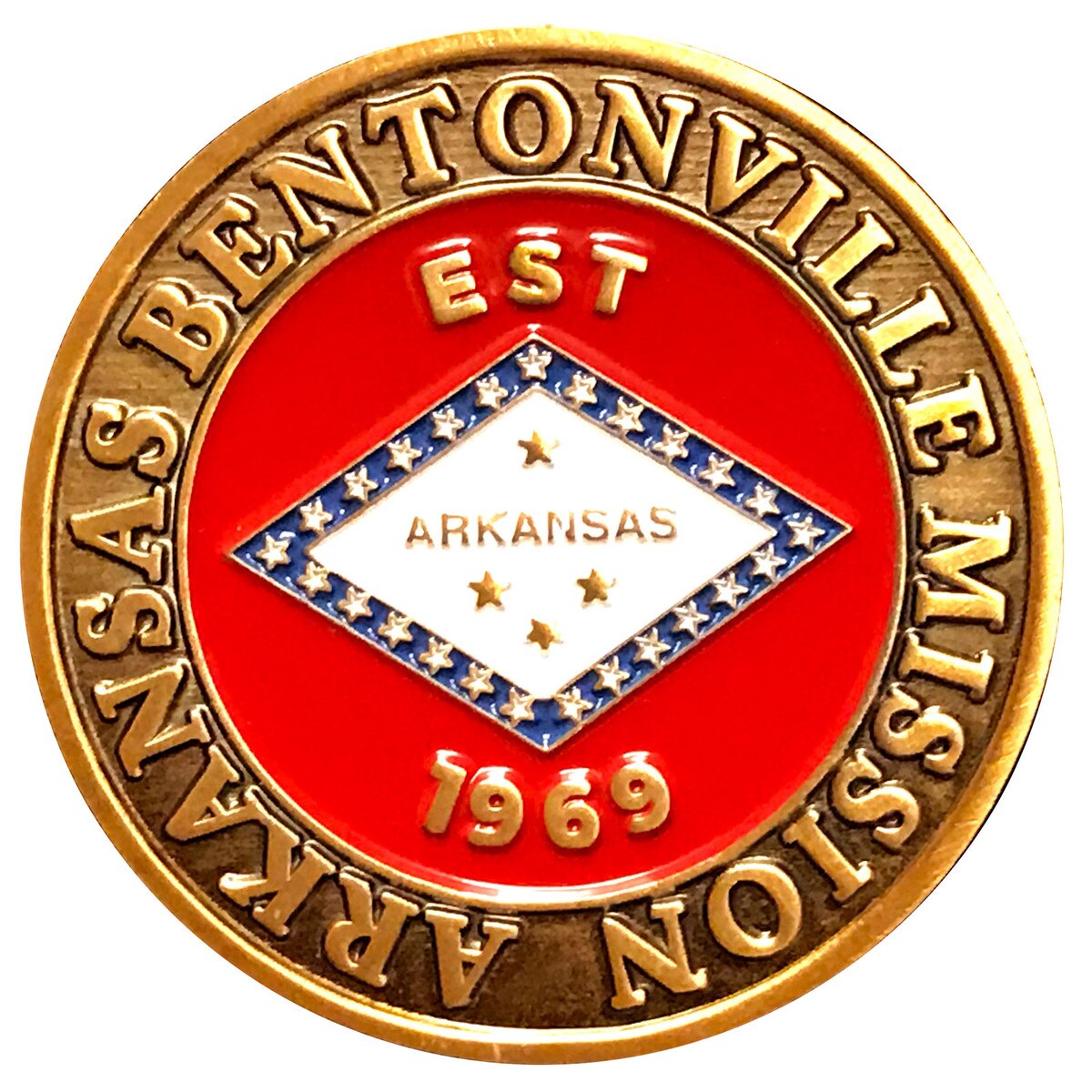 Arkansas Bentonville Commemorative Mission Coin(0)No Reviews yet Arkansas Bentonville Commemorative Mission Coin $16.99 Quantity discounts available QuantityPrice1 – 9$16.9910 – 24$14.4425 – 49$13.5950 +$12.74 Gift Card Amount Quantity -+ Add to Cart Details Est. 1969Solid metalGold-platedAntique rubbed finish1 3/4" diameterHand paintedBrand: Bennett Brands Details Back DetailsEst. 1969Solid metalGold-platedAntique rubbed finish1 3/4" diameterHand paintedBrand: Bennett BrandsSee MoreSee Less Reviews 0 Back Ratings & ReviewsNo reviews availableBe the first to Write a Review