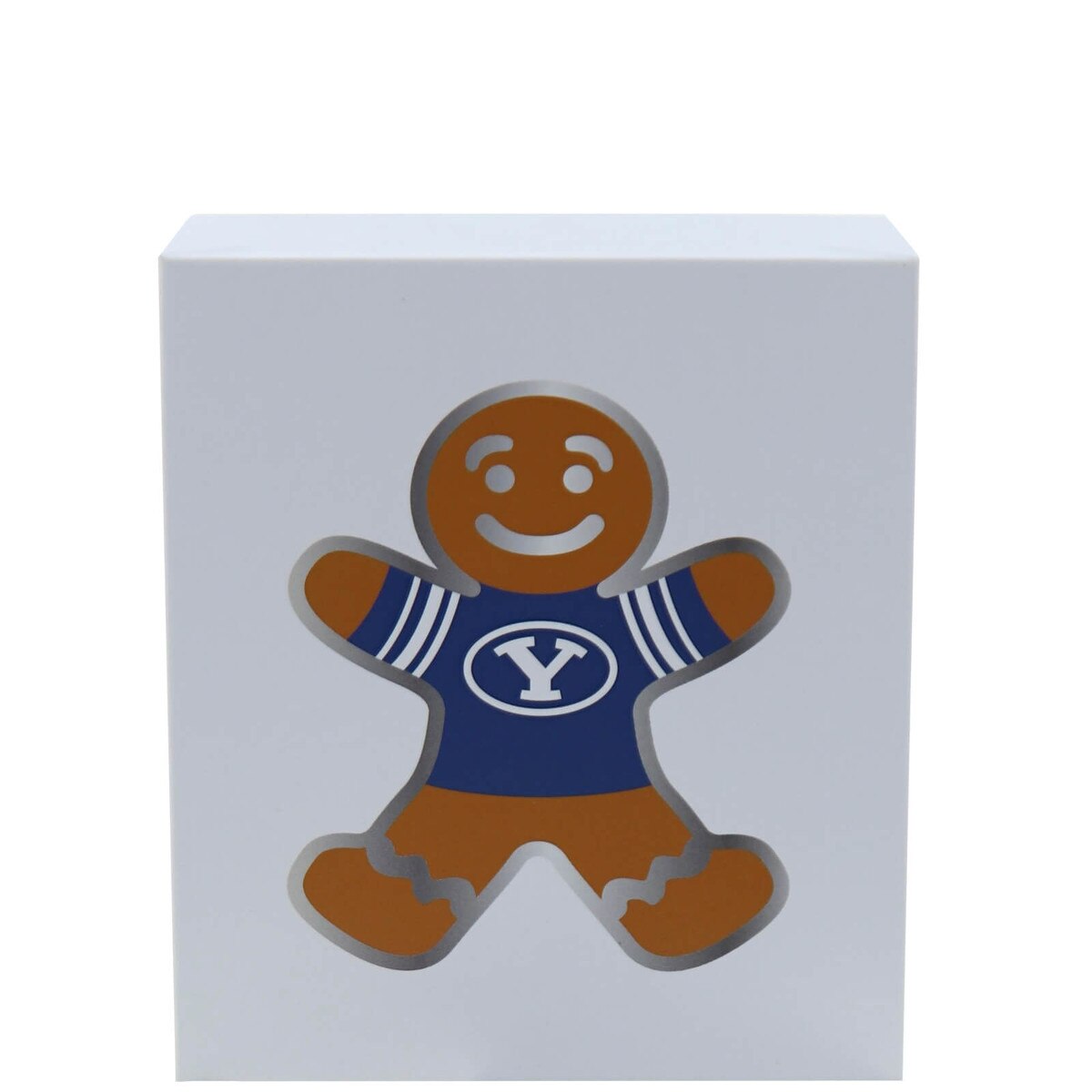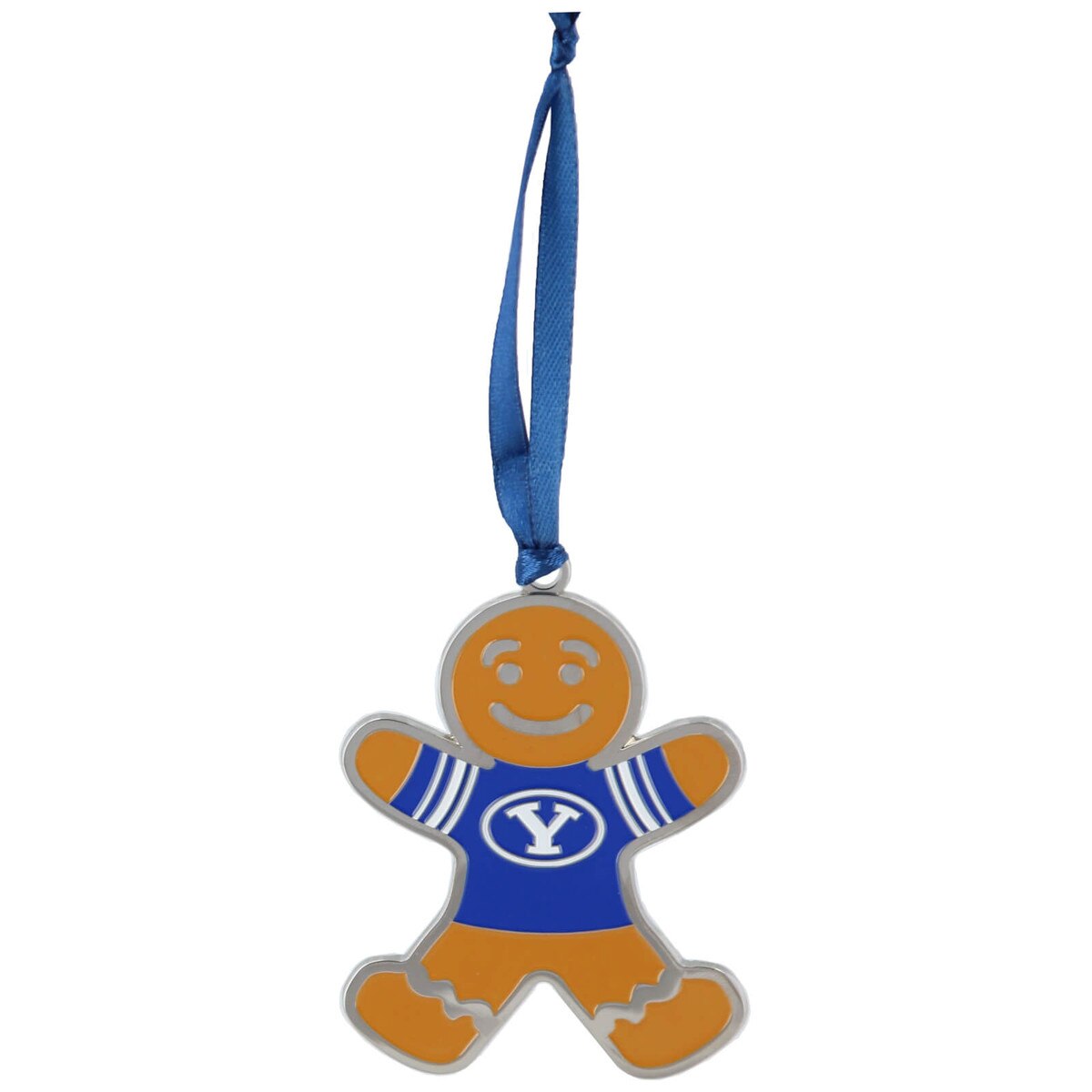 Show your festive Cougar pride with this Brigham Supply Company metal ornament, a strong choice for holiday decorating or year-round display. Featuring the iconic Oval Y on a charming gingerbread man, it's perfect for adding a touch of BYU spirit to your home.