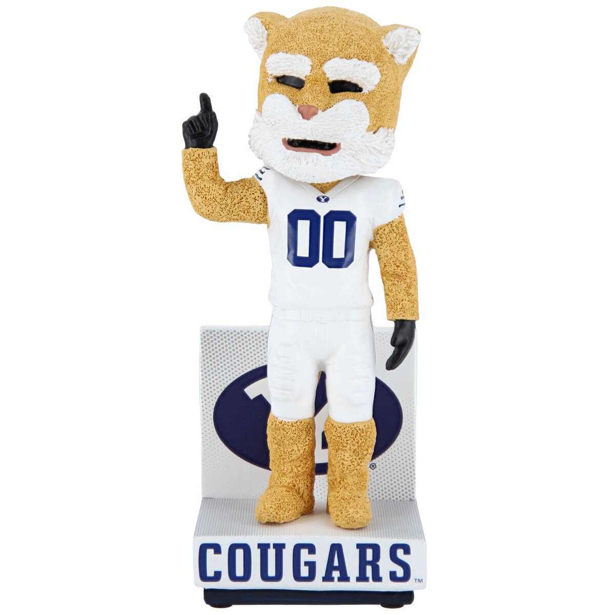 Elevate your Cougars collection with this official Cosmo bobblehead. Celebrating the spirit of BYU football, this high-quality collectible is an essential item for any true fan. Display it proudly at home, work, or school to show off your allegiance and cheer on your team.