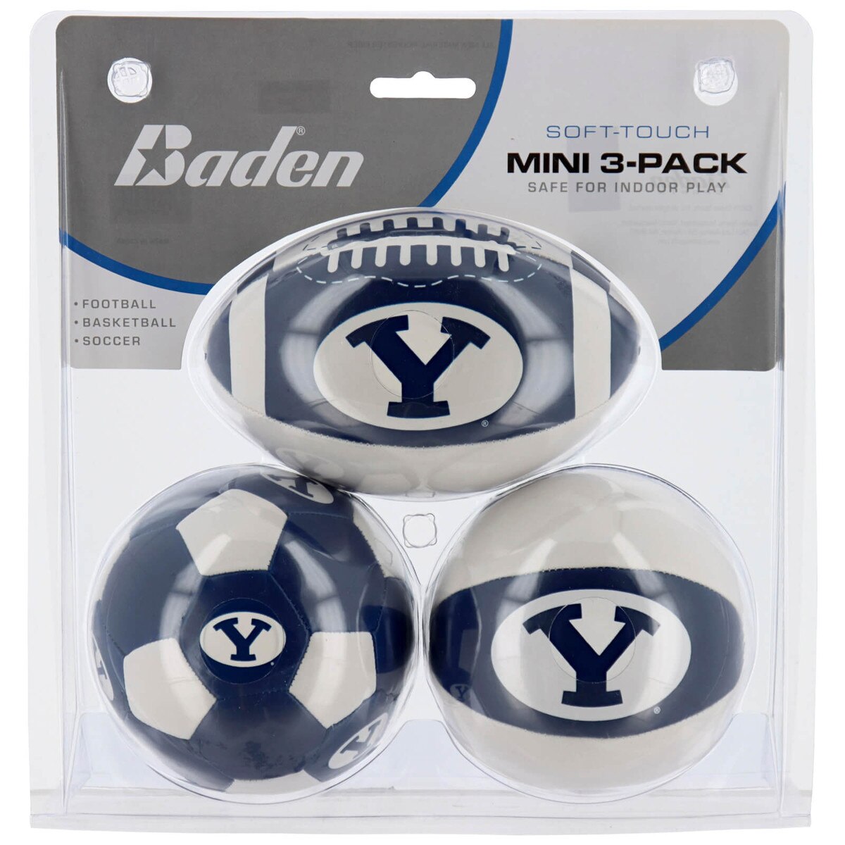 Get in the game with this BYU soft-touch mini sports ball 3-pack! Featuring the iconic Oval Y logo on a soccer ball, football, and basketball, it's an ideal choice for casual play or displaying your Cougar spirit.