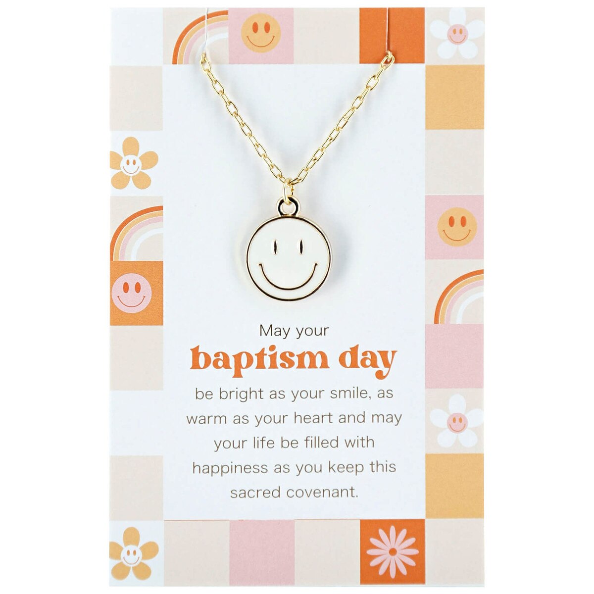 Baptism Smiley Face Necklace(0)No Reviews yet Baptism Smiley Face Necklace $12.99 Quantity discounts available QuantityPrice Gift Card Amount Quantity -+ Add to Cart Details Card: May your baptism day be bright as your smile, as warm as your heart and may your life be filled with happiness as you keep this sacred covenantG... Details Back DetailsCard: May your baptism day be bright as your smile, as warm as your heart and may your life be filled with happiness as you keep this sacred covenantGold finishSmiley face charmLobster claspAdjustable chainBrand: Doodle BeadsSee MoreSee Less Reviews 0 Back Ratings & ReviewsNo reviews availableBe the first to Write a Review