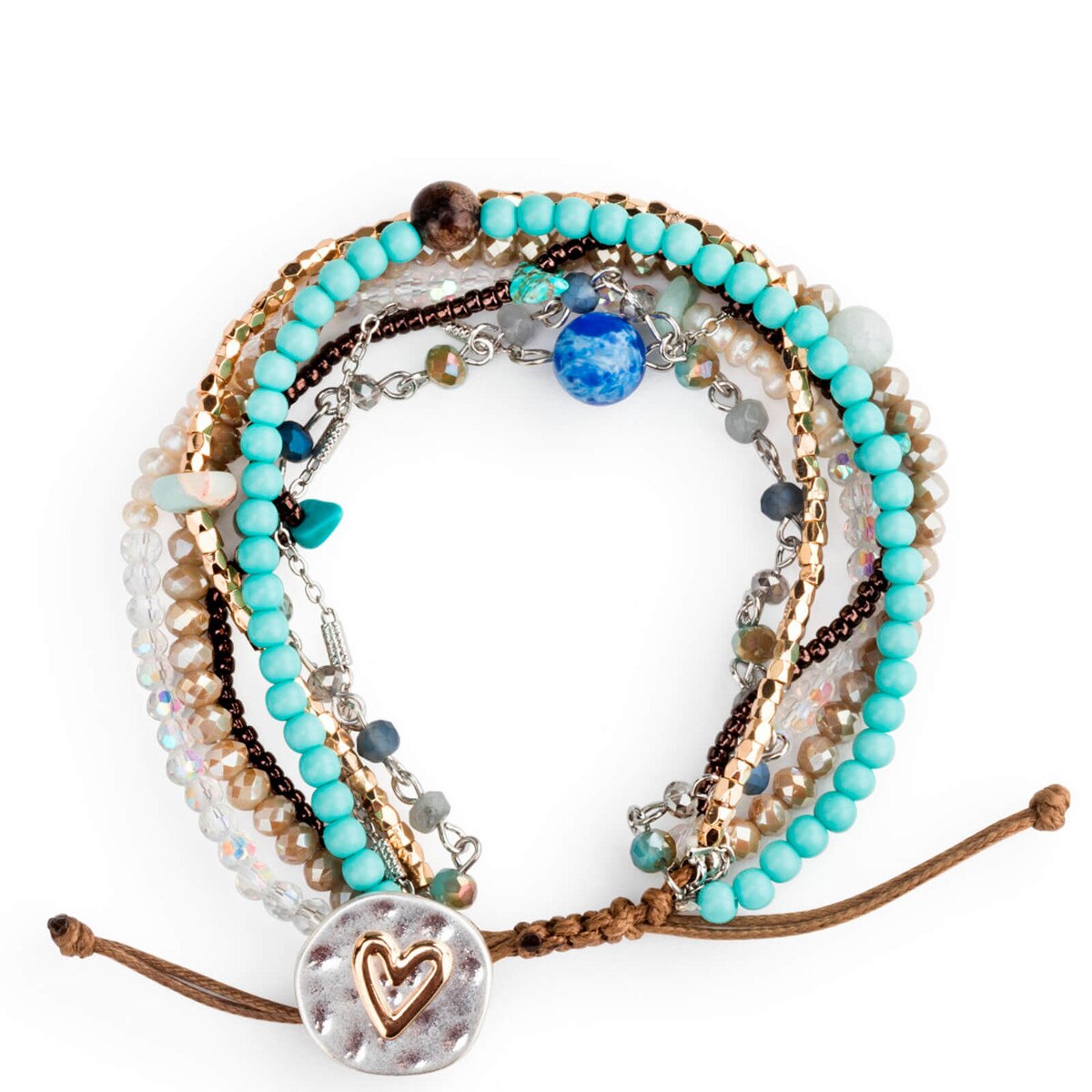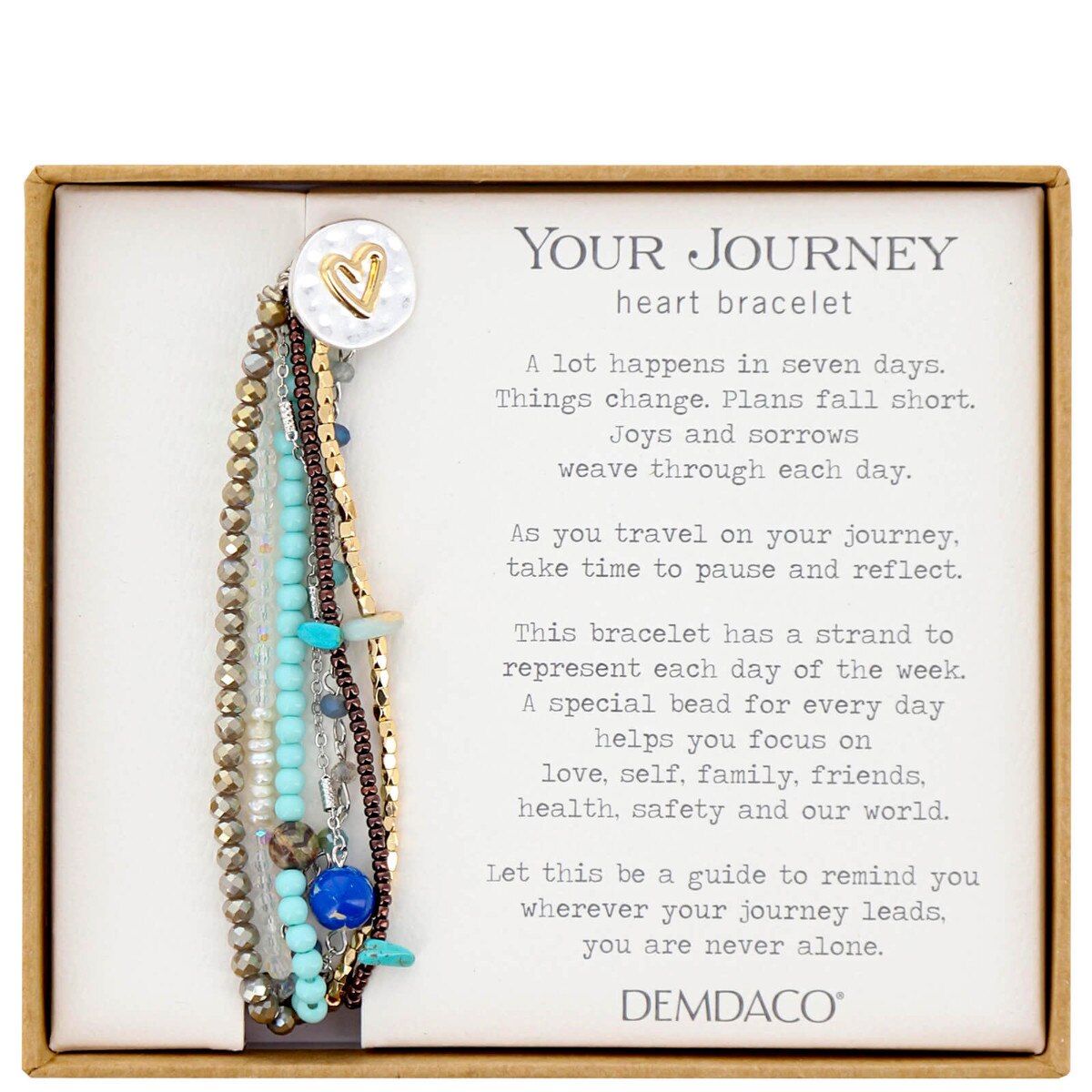 A lot happens in seven days. Things change. Plans fall short. Joys and sorrows weave through each day. As you travel on your journey, take time to pause and reflect. This bracelet has a strand to represent each day of the week. A special bead for every day helps you focus on love, self, family, friends, health, safety and our world. Let this be a guide to remind you wherever your journey leads, you are never alone.