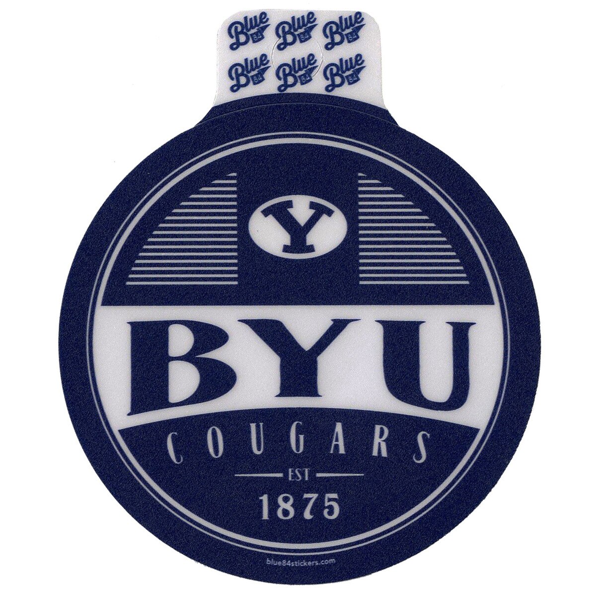 Show your Cougar pride with this sleek BYU sticker from Blue84. Featuring the iconic Oval Y and Est. 1875 design, this durable vinyl decal is built to withstand the elements and adds a bold statement to your gear.