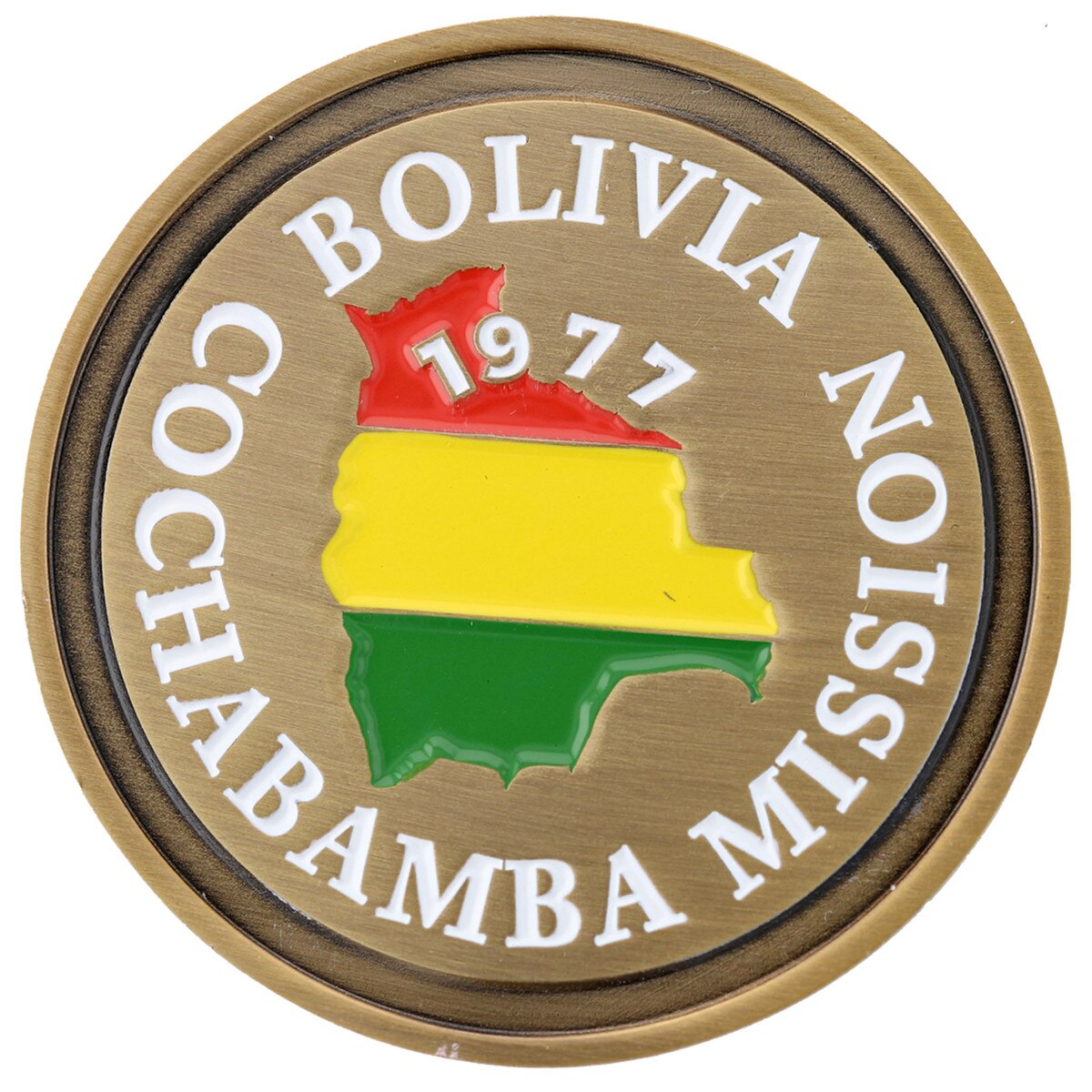 Bolivia Cochabamba Commemorative Mission Coin(0)No Reviews yet Bolivia Cochabamba Commemorative Mission Coin $16.99 Quantity discounts available QuantityPrice1 – 9$16.9910 – 24$14.4425 – 49$13.5950 +$12.74 Gift Card Amount Quantity -+ Add to Cart Details Est. 1977Solid metalGold-platedAntique rubbed finish1 3/4" diameterHand paintedBrand: Bennett Brands Details Back DetailsEst. 1977Solid metalGold-platedAntique rubbed finish1 3/4" diameterHand paintedBrand: Bennett BrandsSee MoreSee Less Reviews 0 Back Ratings & ReviewsNo reviews availableBe the first to Write a Review