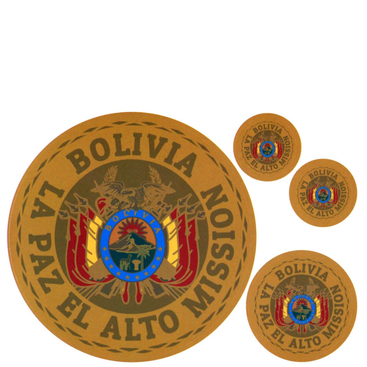Bolivia La Paz El Alto Mission Decals - 4 Pack(0)No Reviews yet Bolivia La Paz El Alto Mission Decals - 4 Pack $5.99 Quantity discounts available QuantityPrice Gift Card Amount Quantity -+ Add to Cart Details Sizes: 3.5", 1.5", 0.875"WaterproofAttaches to nearly anything!Brand: Bennett Brands Details Back DetailsSizes: 3.5", 1.5", 0.875"WaterproofAttaches to nearly anything!Brand: Bennett BrandsSee MoreSee Less Reviews 0 Back Ratings & ReviewsNo reviews availableBe the first to Write a Review