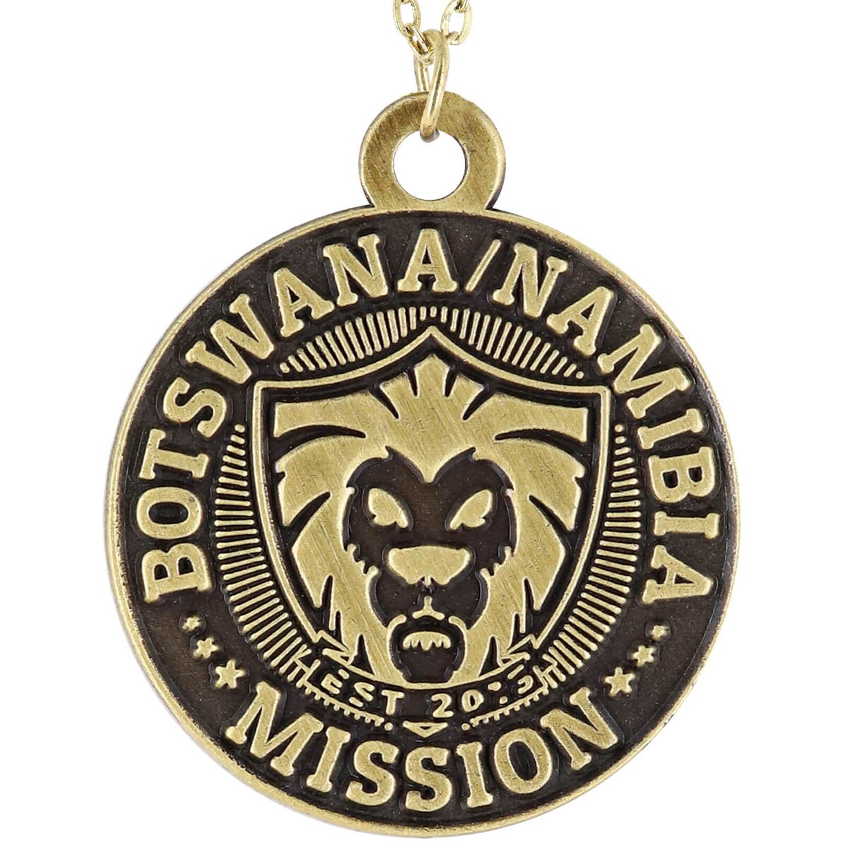 Botswana Namibia Mission Necklace(0)No Reviews yet Botswana Namibia Mission Necklace $14.99 Quantity discounts available QuantityPrice1 – 9$14.9910 – 24$12.7425 – 49$11.9950 +$11.24 Gift Card Amount Quantity -+ Add to Cart Details Gold FinishApprox. 10.5" cable chainPendant size: 0.75"Lobster Clasp Brand: Bennett Brands Details Back DetailsGold FinishApprox. 10.5" cable chainPendant size: 0.75"Lobster Clasp Brand: Bennett BrandsSee MoreSee Less Reviews 0 Back Ratings & ReviewsNo reviews availableBe the first to Write a Review