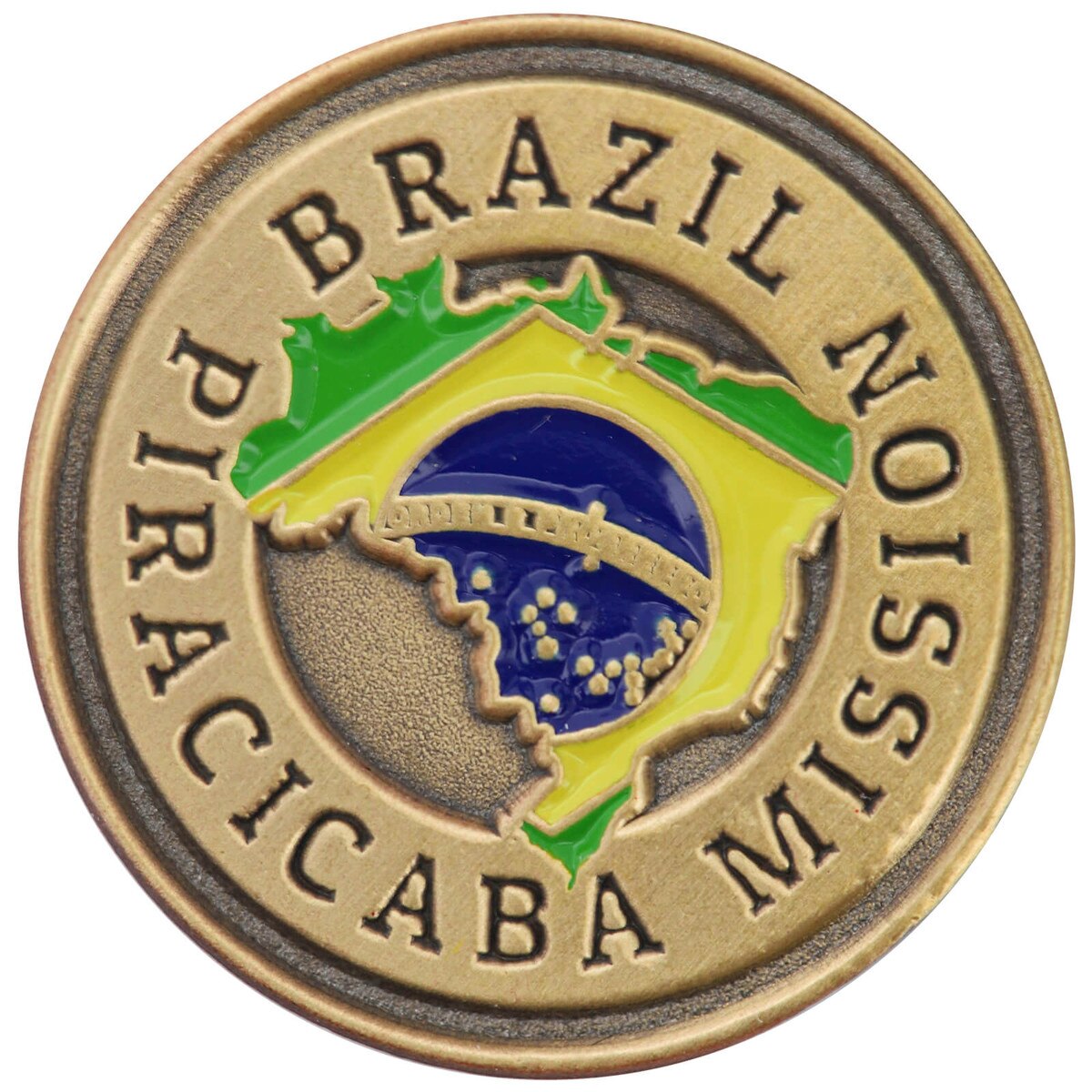 Brazil Piracicaba Commemorative Mission Pin(0)No Reviews yet Brazil Piracicaba Commemorative Mission Pin $12.99 Quantity discounts available QuantityPrice1 – 9$12.9910 – 24$11.0425 – 49$10.3950 +$9.74 Gift Card Amount Quantity -+ Add to Cart Details Est. 2013Solid metalGold-platedAntique rubbed finish7/8" diameterHand paintedButterfly pin backBrand: Bennett Brands Details Back DetailsEst. 2013Solid metalGold-platedAntique rubbed finish7/8" diameterHand paintedButterfly pin backBrand: Bennett BrandsSee MoreSee Less Reviews 0 Back Ratings & ReviewsNo reviews availableBe the first to Write a Review