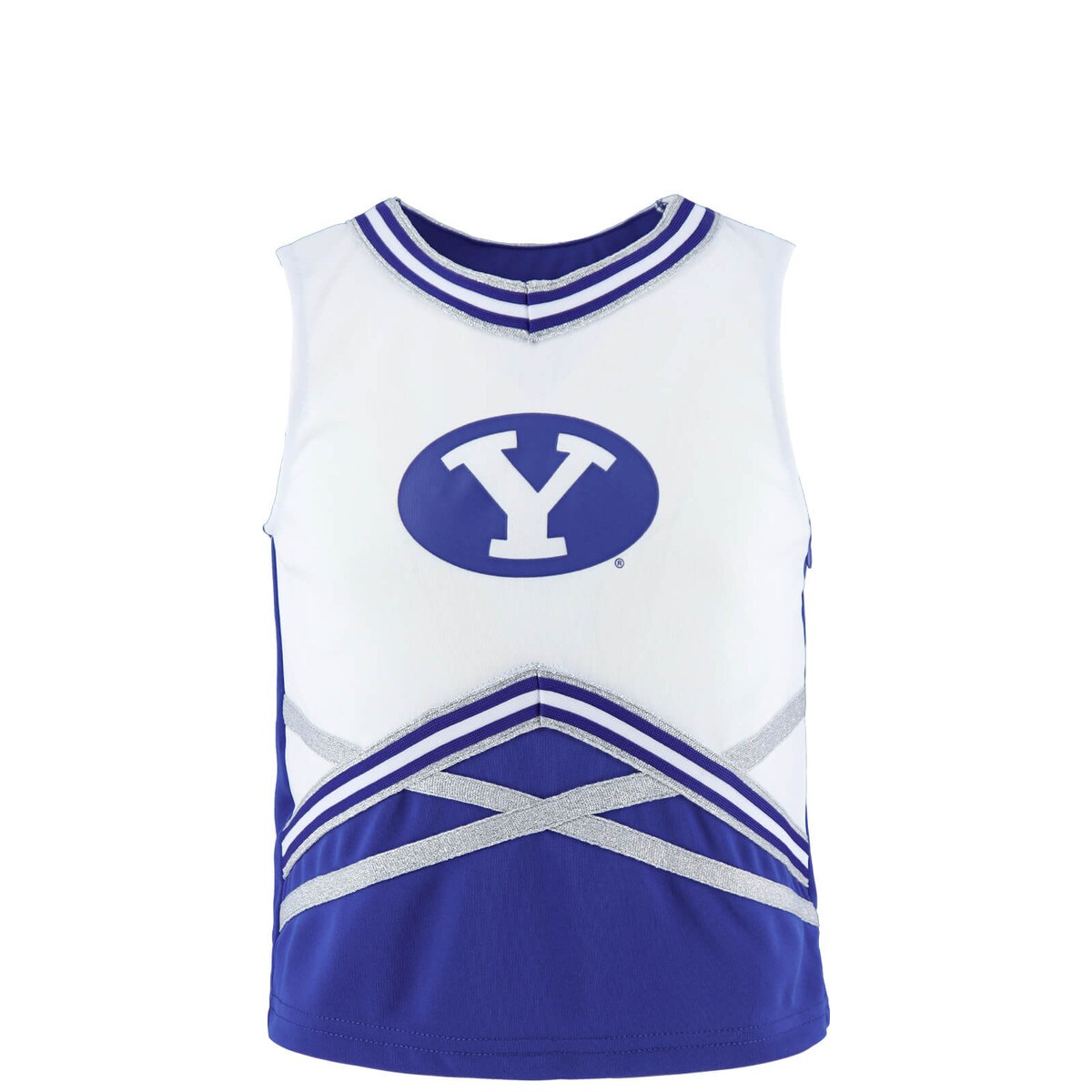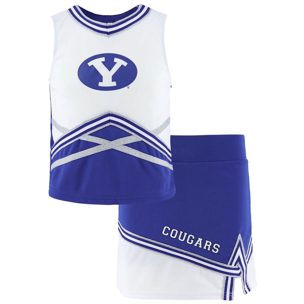 Get your little cheerleader ready for game day with this spirited BYU cheer set. Featuring a comfortable sleeveless top and a skirt with built-in shorts, this set is ideal for keeping your youth cool and comfortable while they cheer on the Cougars.