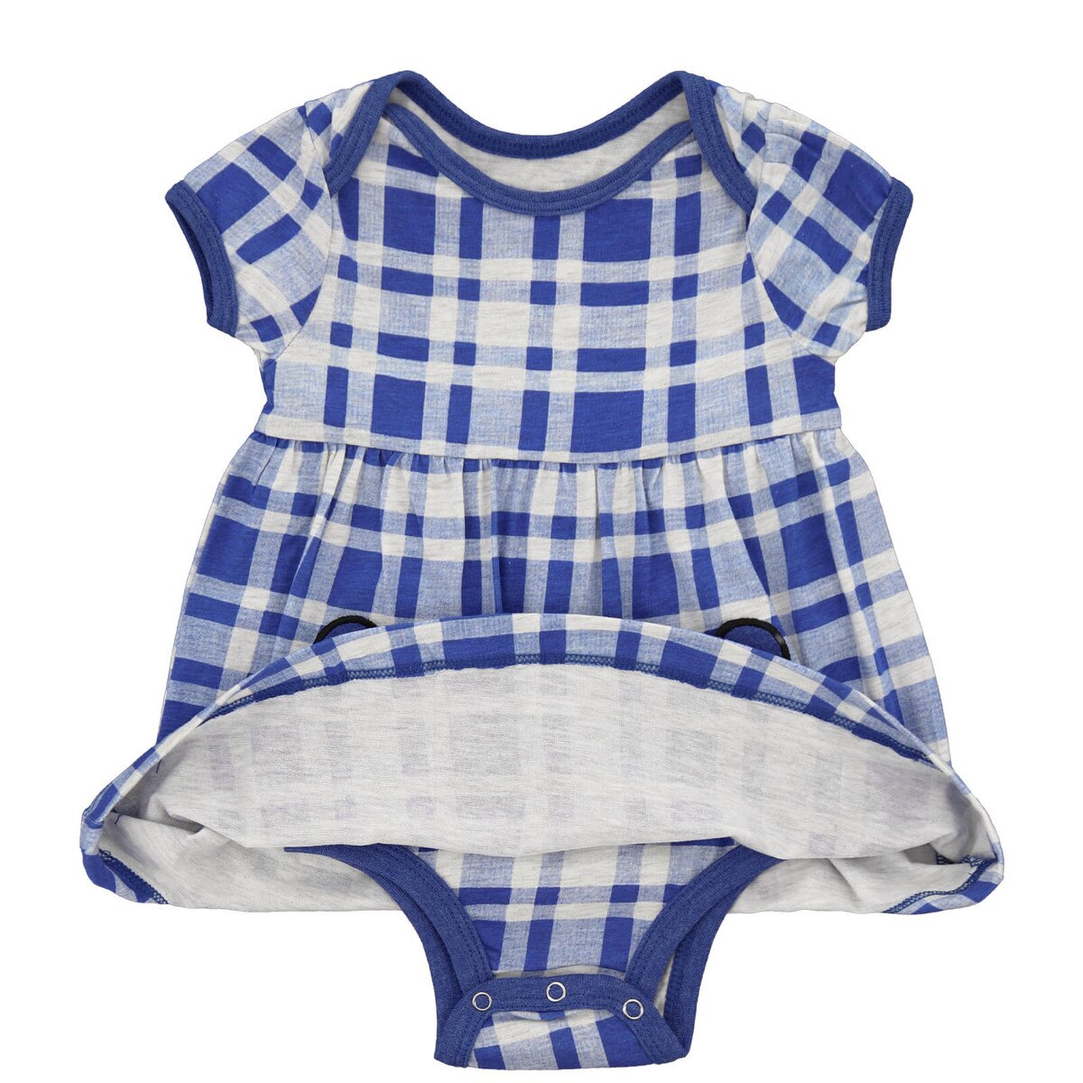- Features: Cardigan - Long sleeves, 3 front snaps; One-piece Dress - envelope neck, Short sleeves, 3 inseam snaps