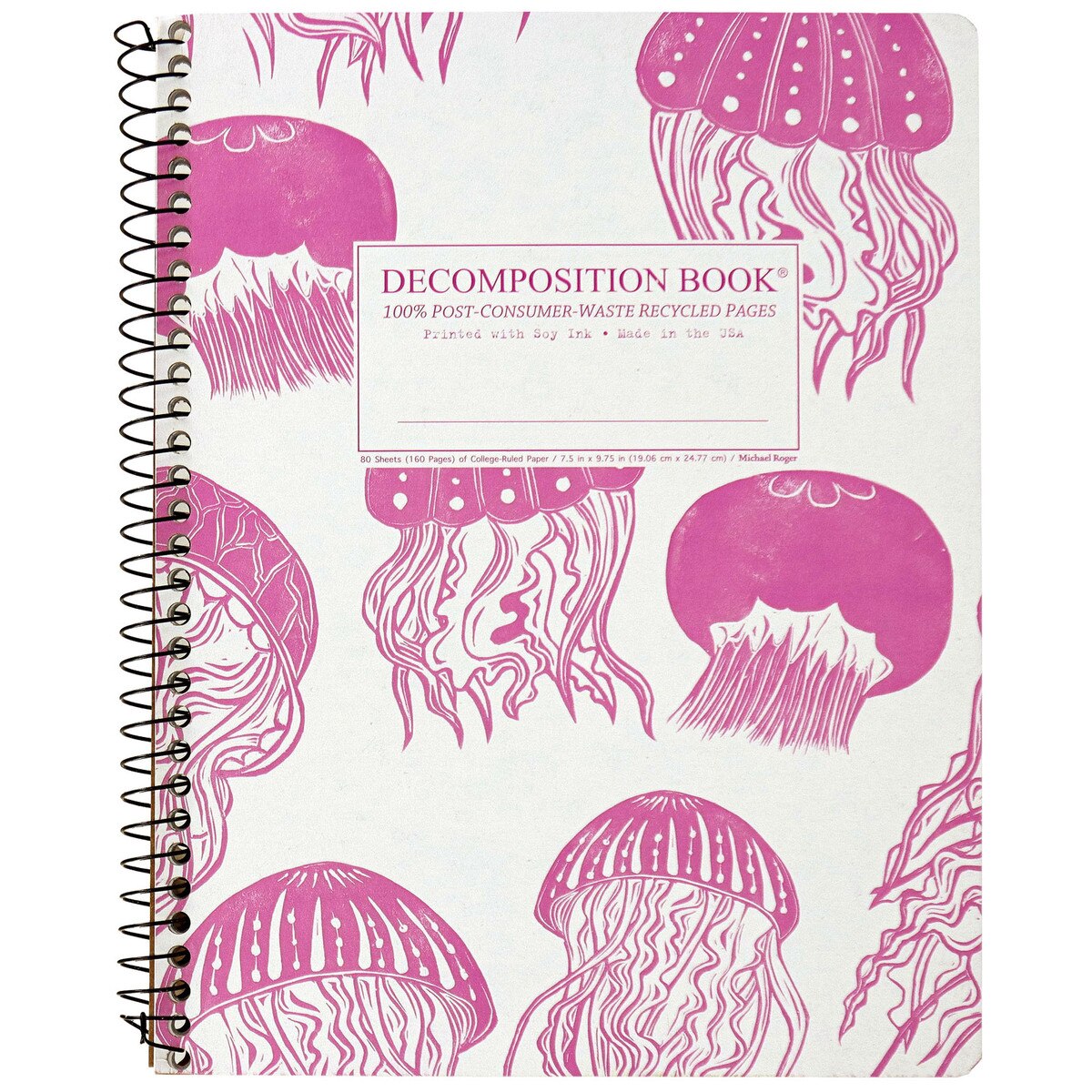 Let your creativity flow with the Jellyfish Decomposition Notebook. Featuring mesmerizing jellyfish art and 160 recycled pages, this spiral-bound notebook is a sustainable and artistic choice for every note-taking need.