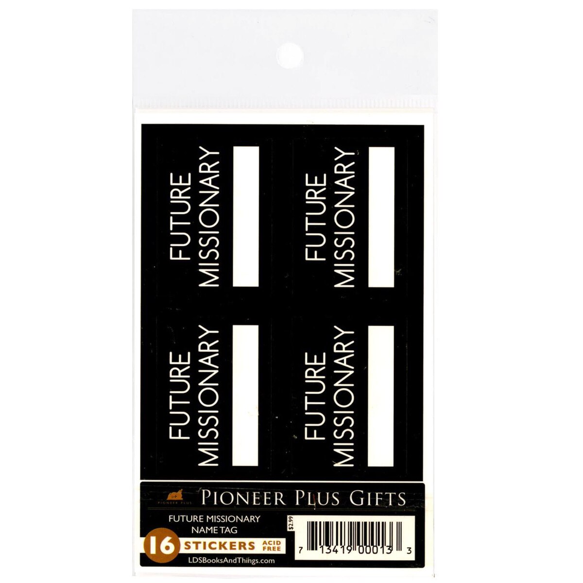 Future Missionary Name Tag Stickers - 16 Count(0)No Reviews yet Future Missionary Name Tag Stickers - 16 Count $2.99 Quantity discounts available QuantityPrice1 – 9$2.9910 – 24$2.5425 – 49$2.3950 +$2.24 Gift Card Amount Quantity -+ Add to Cart Details 60 Future Missionary Name Tag stickersAcid freeBrand: Pioneer PlusSticker approx. 2" x 1.25" Details Back Details60 Future Missionary Name Tag stickersAcid freeBrand: Pioneer PlusSticker approx. 2" x 1.25"See MoreSee Less Reviews 0 Back Ratings & ReviewsNo reviews availableBe the first to Write a Review