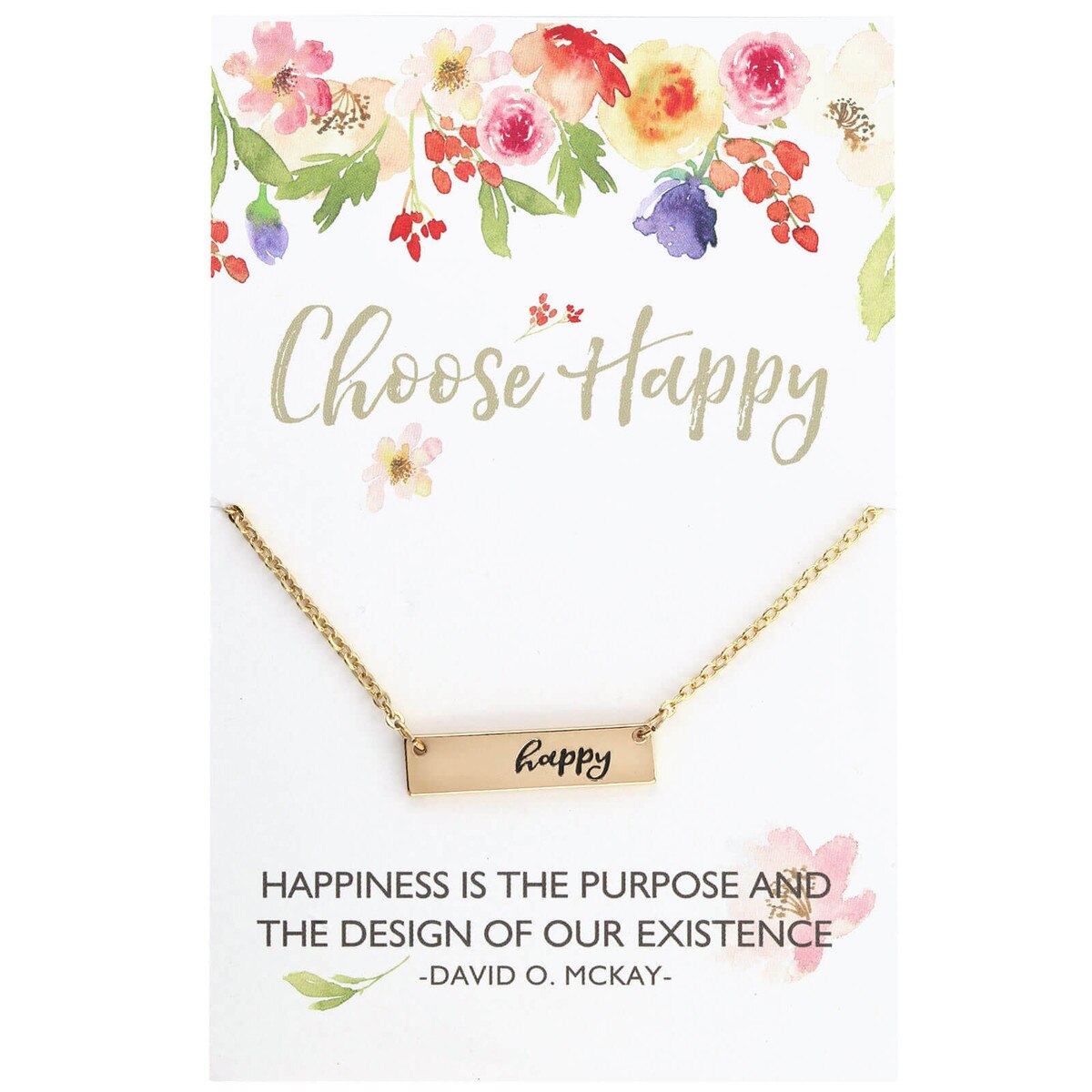 Choose Happy Necklace(0)No Reviews yet Choose Happy Necklace $12.99 Quantity discounts available QuantityPrice1 – 9$12.9910 – 24$11.0425 – 49$10.3950 +$9.74 Gift Card Amount Quantity -+ Add to Cart Details Card: "Happiness is the purpose and the design of our existence" - David O. McKayGold finishHappy pendantLobster clasp15" - 17" adjustable chainBrand:... Details Back DetailsCard: "Happiness is the purpose and the design of our existence" - David O. McKayGold finishHappy pendantLobster clasp15" - 17" adjustable chainBrand: Doodle BeadsSee MoreSee Less Reviews 0 Back Ratings & ReviewsNo reviews availableBe the first to Write a Review