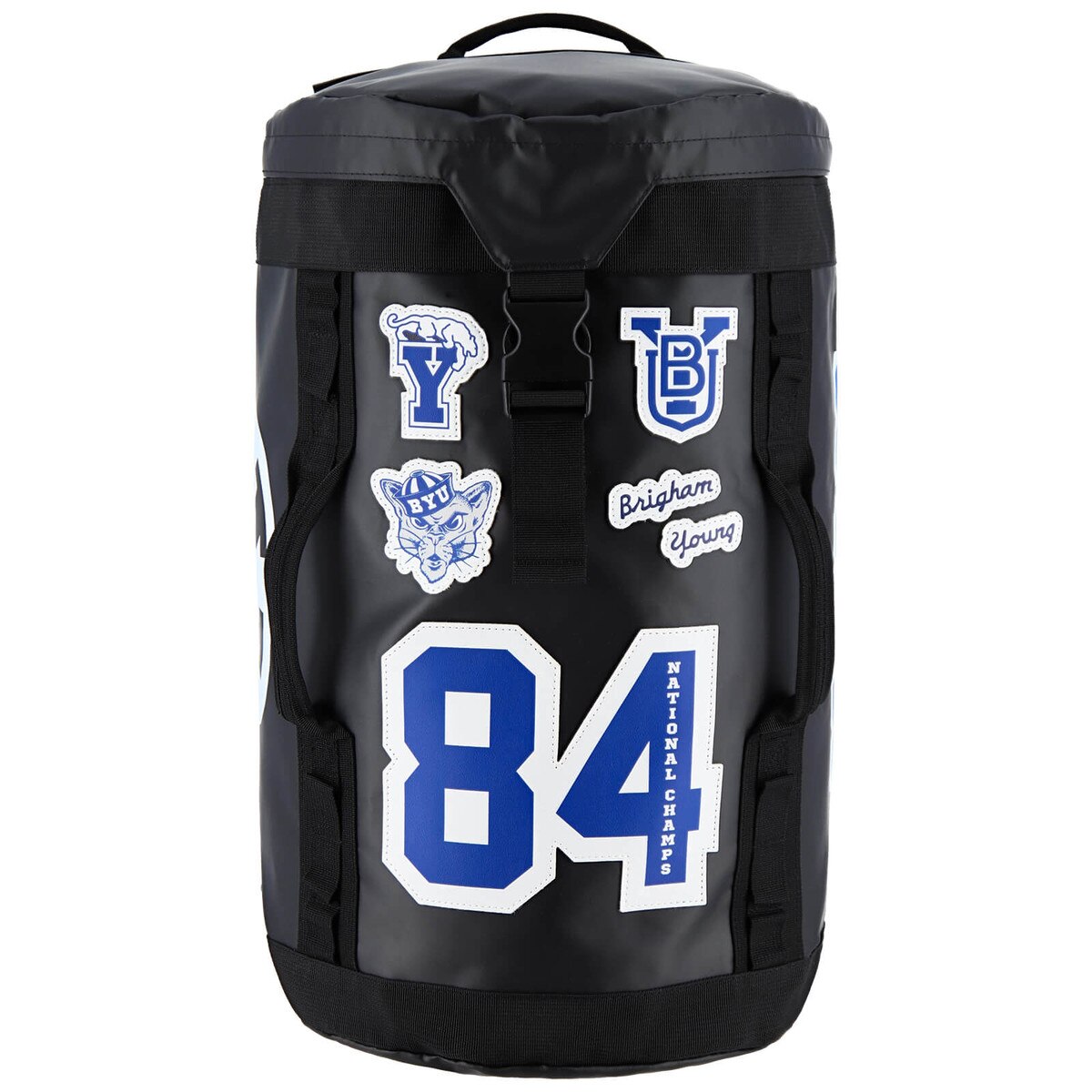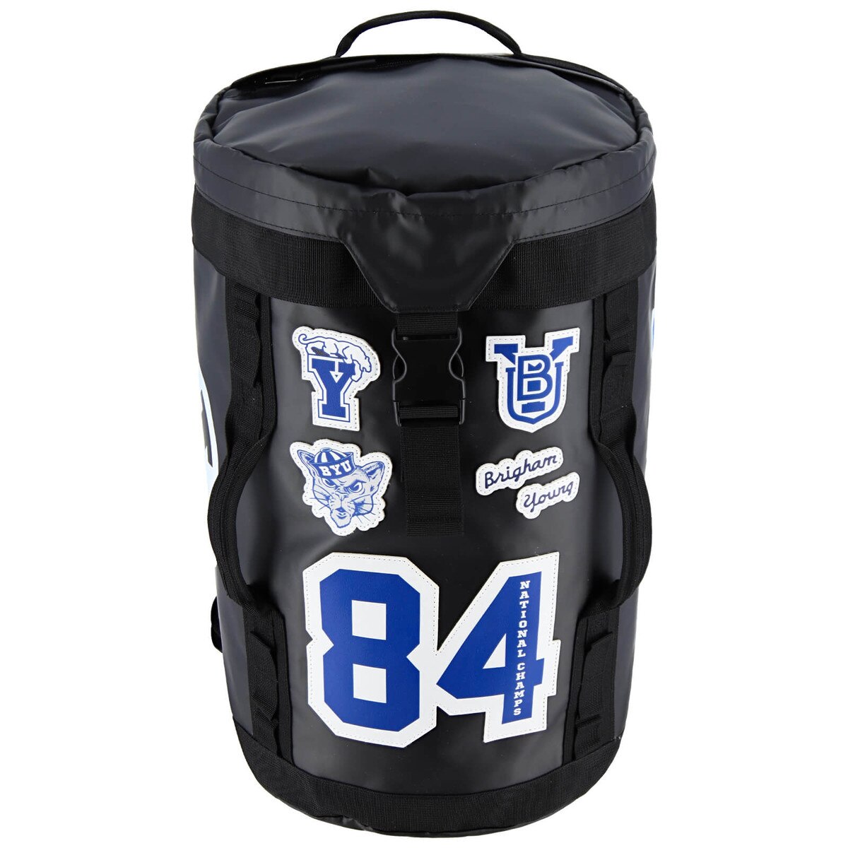 Carry your gear in ultimate Cougars style with the Multi-Logo BYU Premium Duffle Bag from Brigham Supply Company! This robust bag features an array of screen-printed and patched BYU logos, along with four carrying handles, adjustable shoulder straps, and a chest belt buckle for comfortable transport. Its spacious main compartment, zippered upper compartment, and drawstring expansion make it ideal for the gym, travel, or your next game day adventure.
