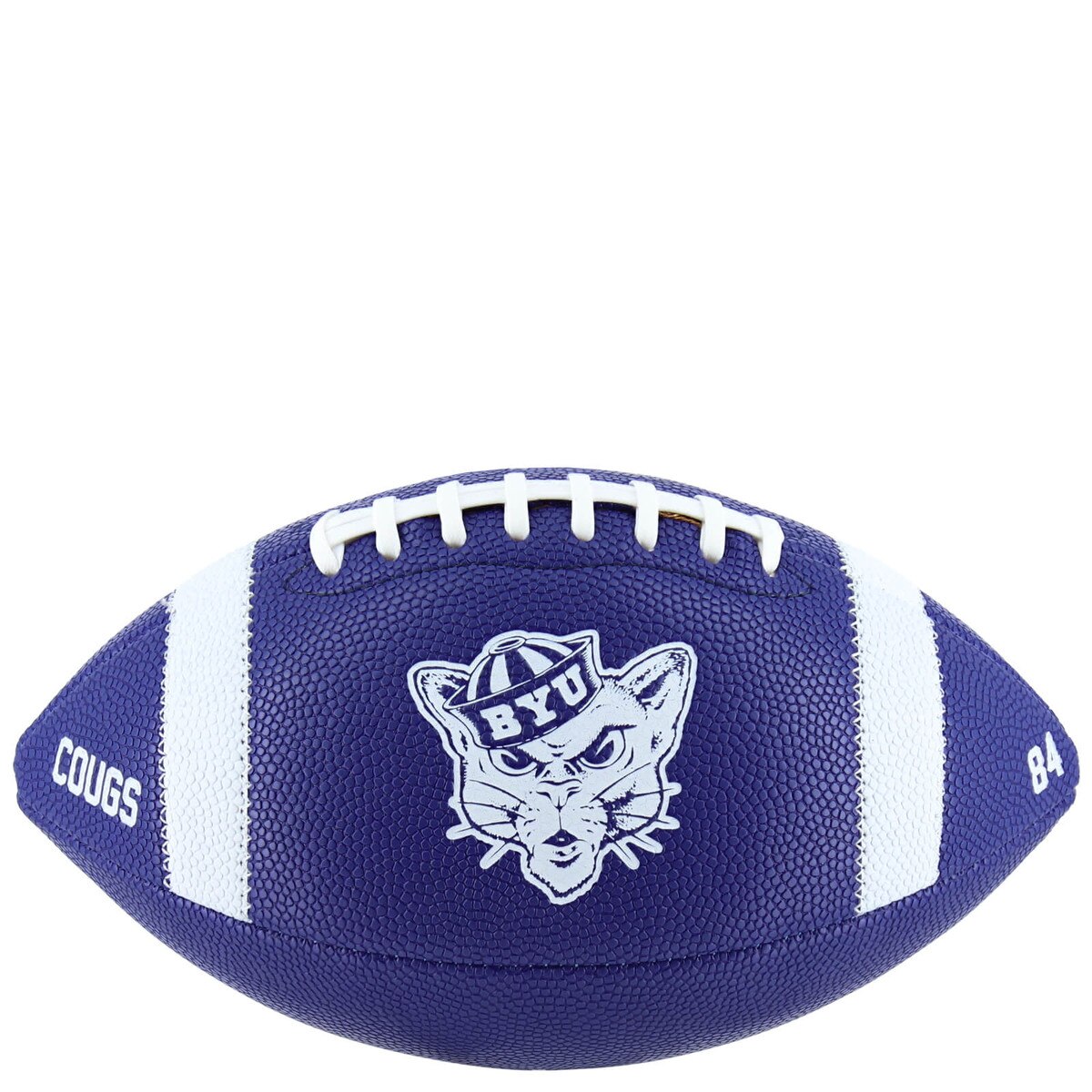 Take the game (or the tailgate) to the next level with this official-size football. Made from durable synthetic leather, it’s built to last while still offering a super grippy feel that just begs to be thrown. Measuring approximately 10 inches, it’s the perfect size for both display and play. Decorated with classic BYU pride—including the Oval Y, Sailor Hat Cougar, “Go Cougs,” and “84 Champs” logos—this ball celebrates tradition while keeping game-day energy alive.