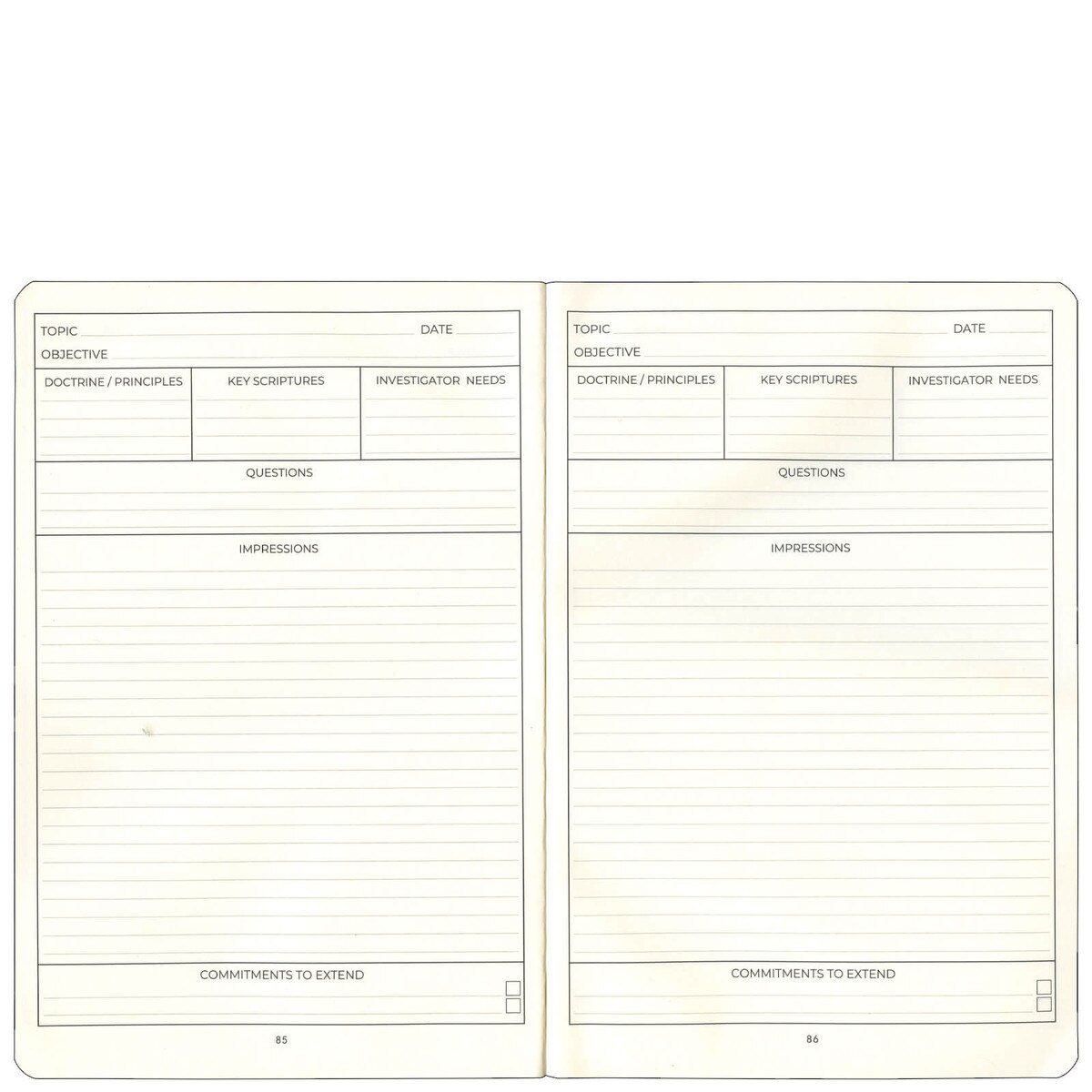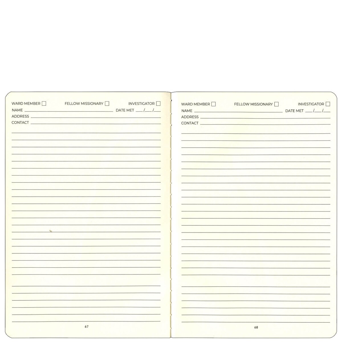 Dedicate a specific page to those you meet on your mission. From your mission president to a ward member in your area, everyone that impacts you deserves to be remembered. Study by topic, record key scriptures, ask questions, and document impressions you have during your daily scripture study. Blank lines for everything else you want to remember. The good days, the hard days, and everything in between.
