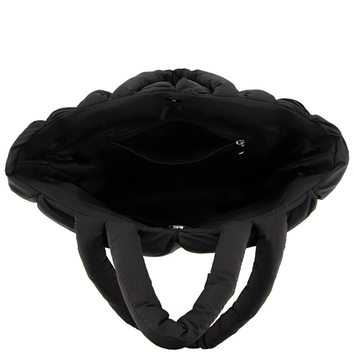 - Features: Snap main compartment, small and large dual carrying handles