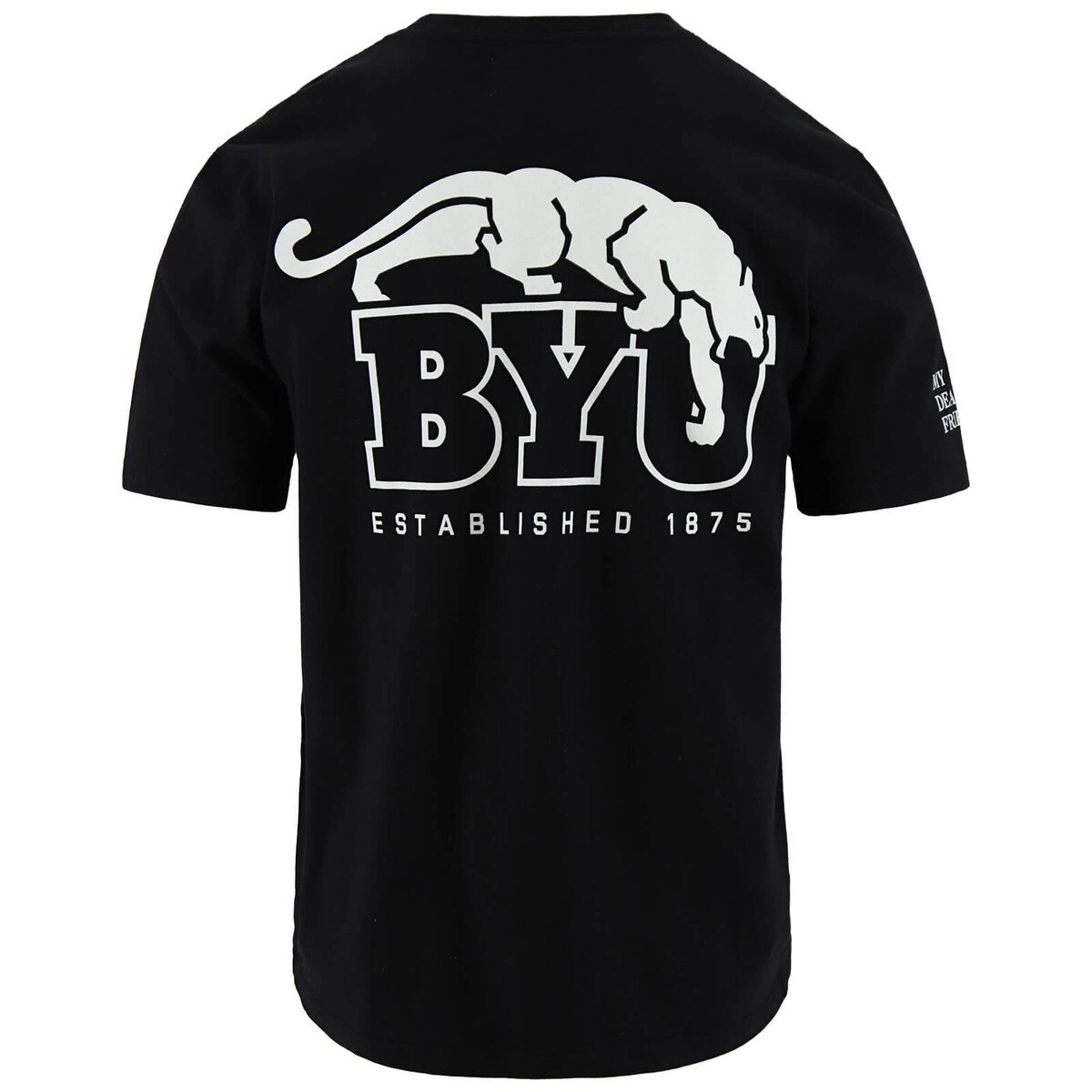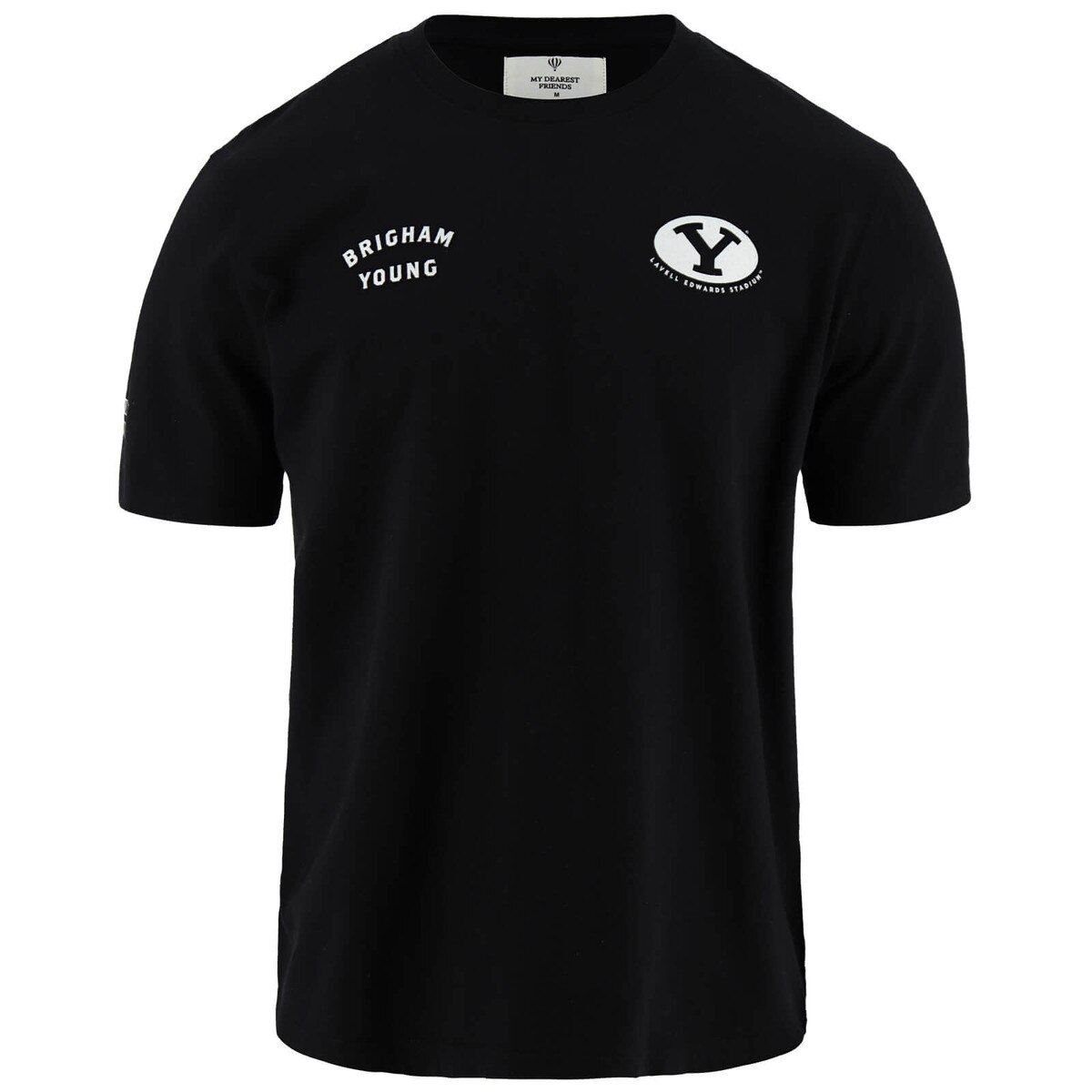 Celebrate BYU tradition in this retro-style black tee by My Dearest Friends, featuring pocket logos up front and a bold vintage Cougar design across the back.