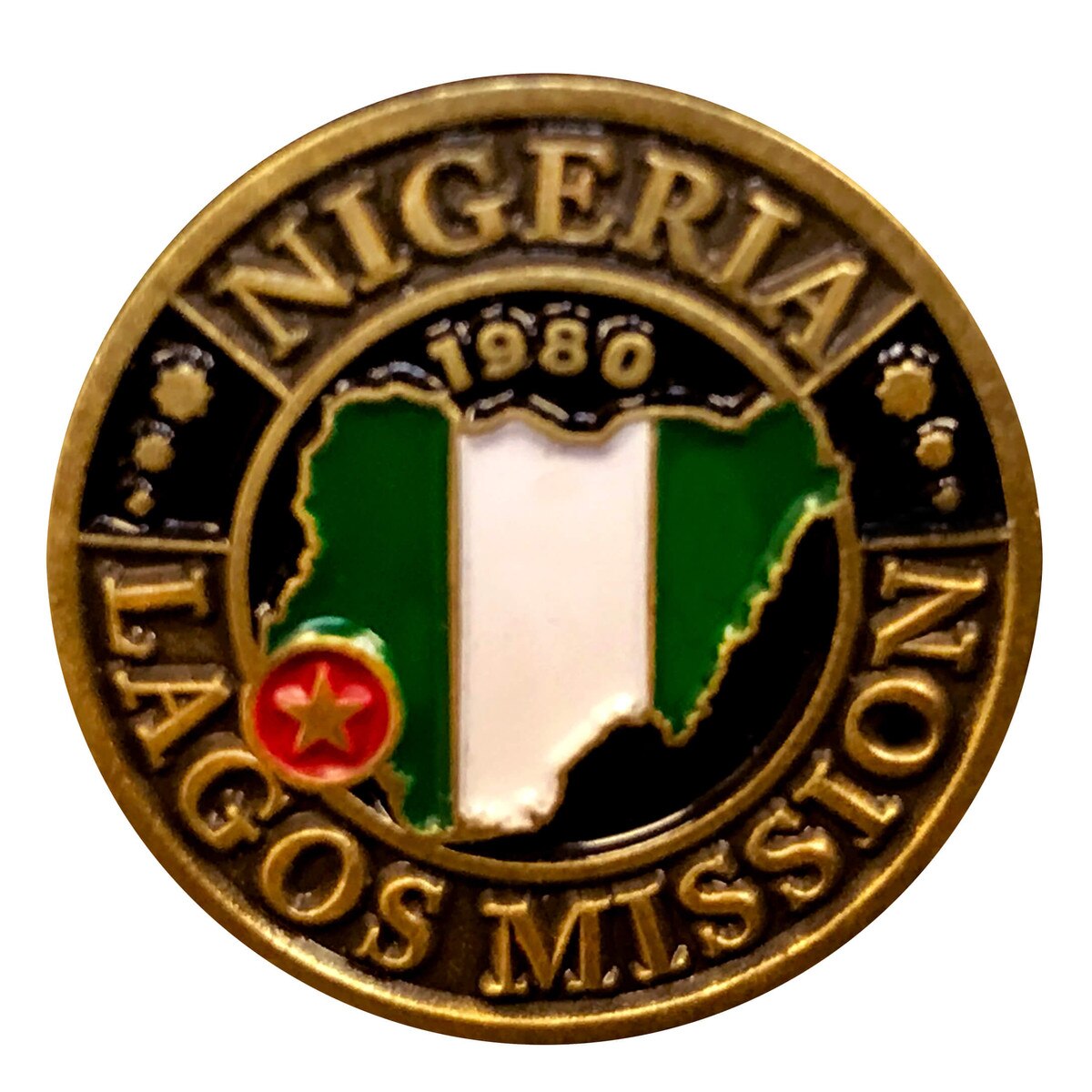 Nigeria Lagos Commemorative Mission Pin(0)No Reviews yet Nigeria Lagos Commemorative Mission Pin $12.99 Quantity discounts available QuantityPrice1 – 9$12.9910 – 24$11.0425 – 49$10.3950 +$9.74 Gift Card Amount Quantity -+ Add to Cart Details Est. 1980Solid metalGold-platedAntique rubbed finish7/8" diameterHand paintedButterfly pin backBrand: Bennett Brands Details Back DetailsEst. 1980Solid metalGold-platedAntique rubbed finish7/8" diameterHand paintedButterfly pin backBrand: Bennett BrandsSee MoreSee Less Reviews 0 Back Ratings & ReviewsNo reviews availableBe the first to Write a Review