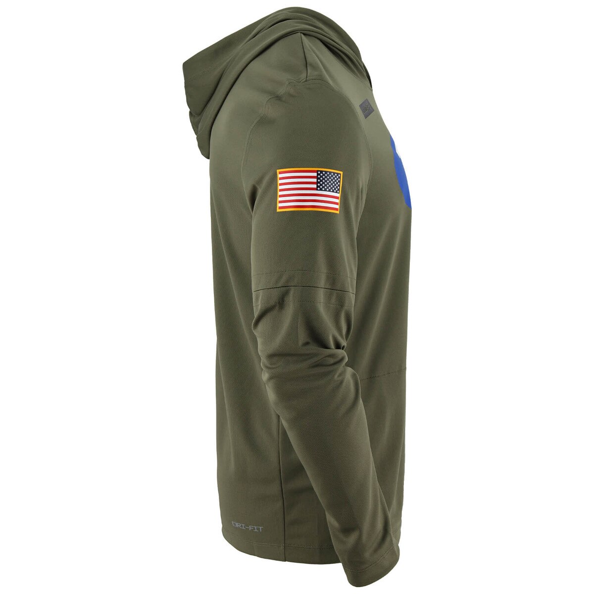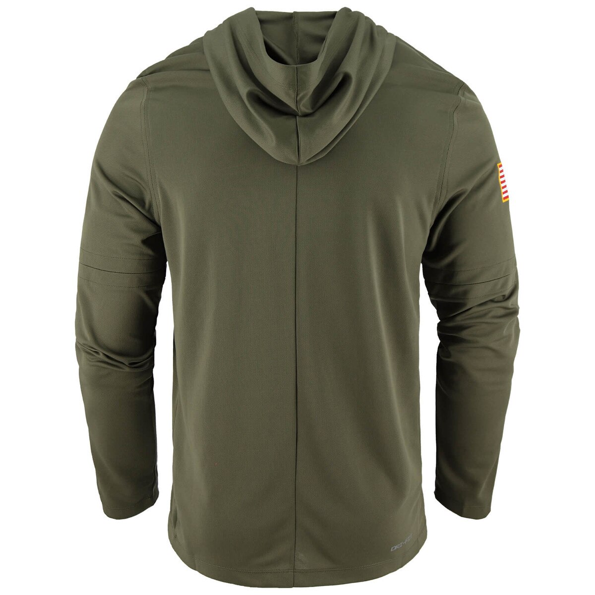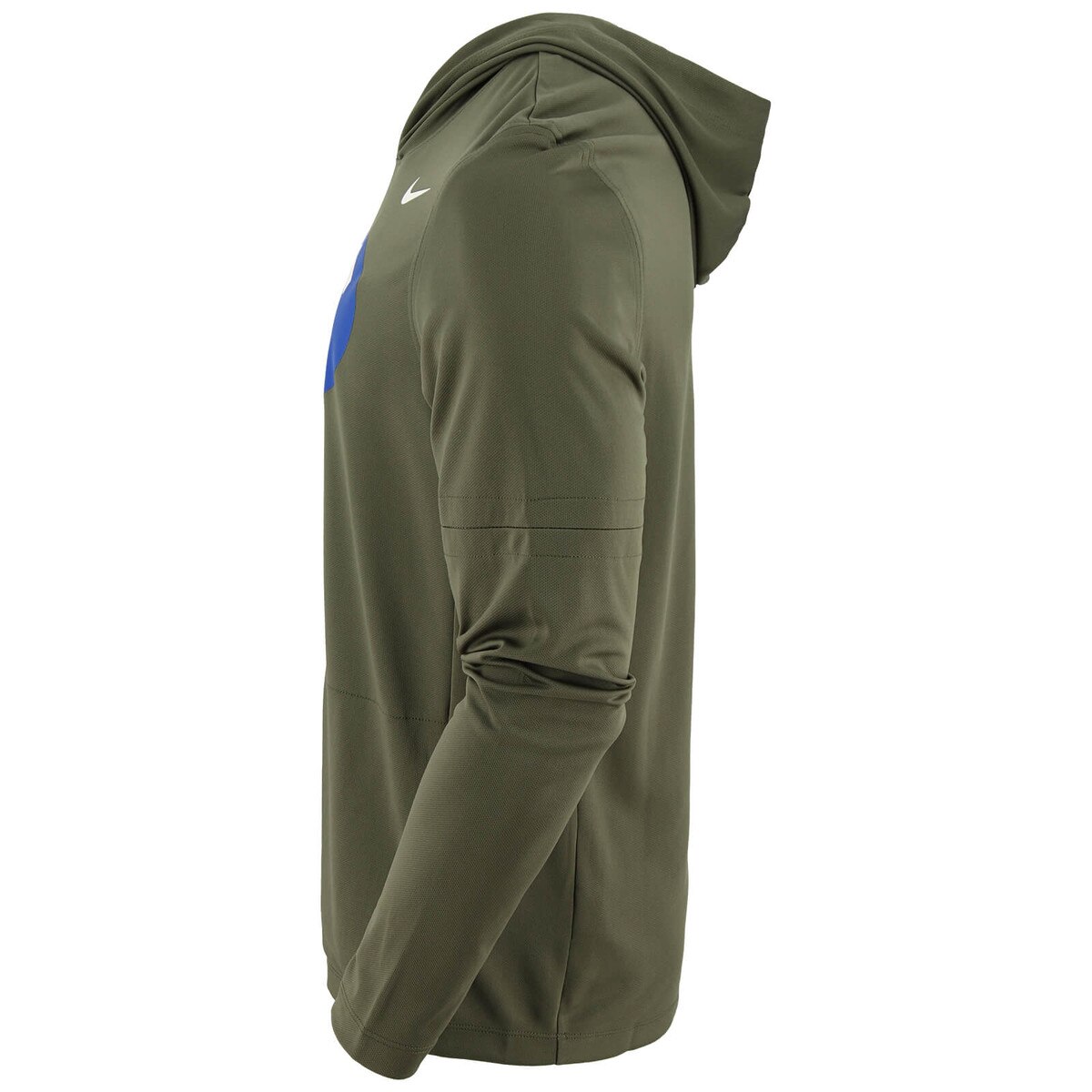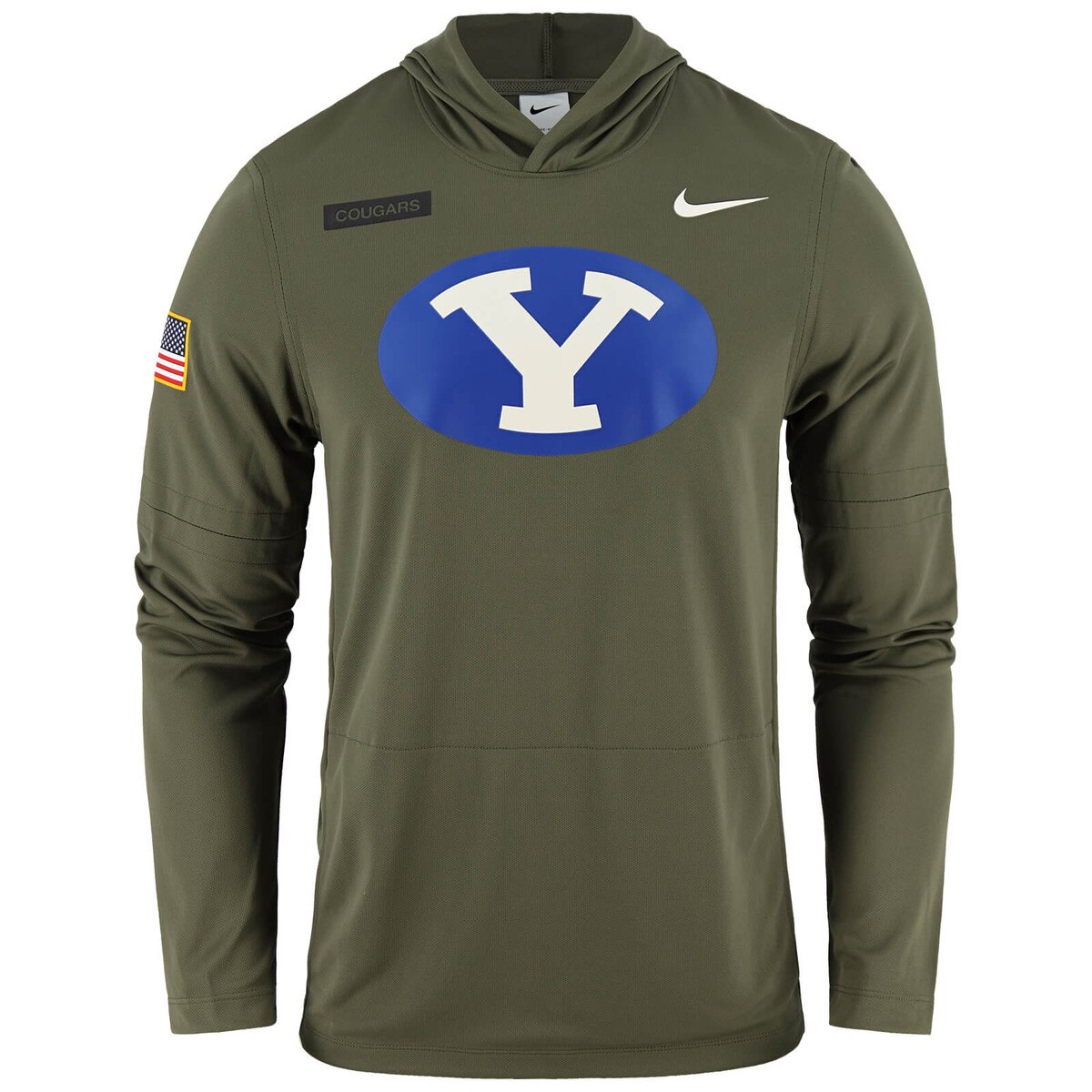 Ideal for repping your team on cooler days, this Nike BYU hoodie pays tribute to the armed forces with clean, heat-applied graphics. Its 100% polyester Dri-Fit construction manages moisture, while the front pouch pocket adds utility as you cheer on the Cougars.
