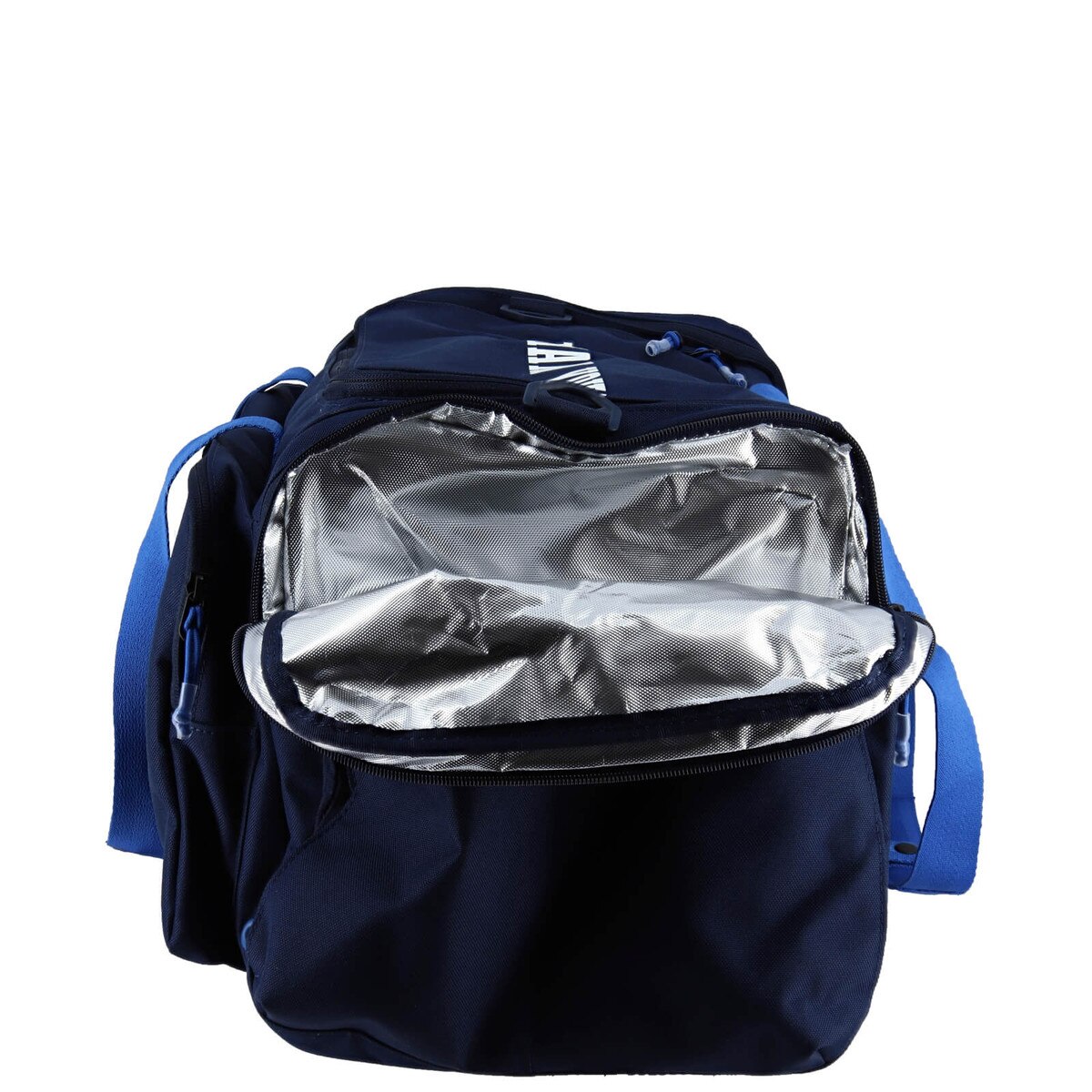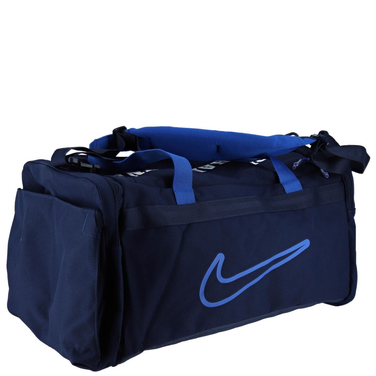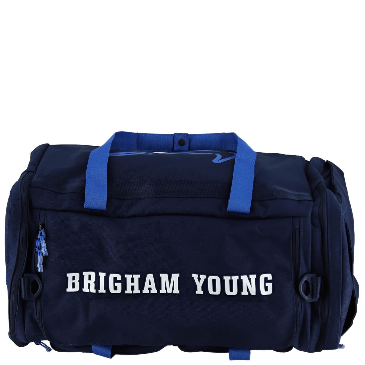 Gear up for your next adventure with this Nike BYU duffel bag. Featuring screen-printed Oval Y and Brigham Young logos, this spacious bag offers ample storage with a zippered main compartment and five exterior zippered pockets. The adjustable shoulder strap and three carrying handles provide versatile transport for all your essentials, making it ideal for travel or the gym.