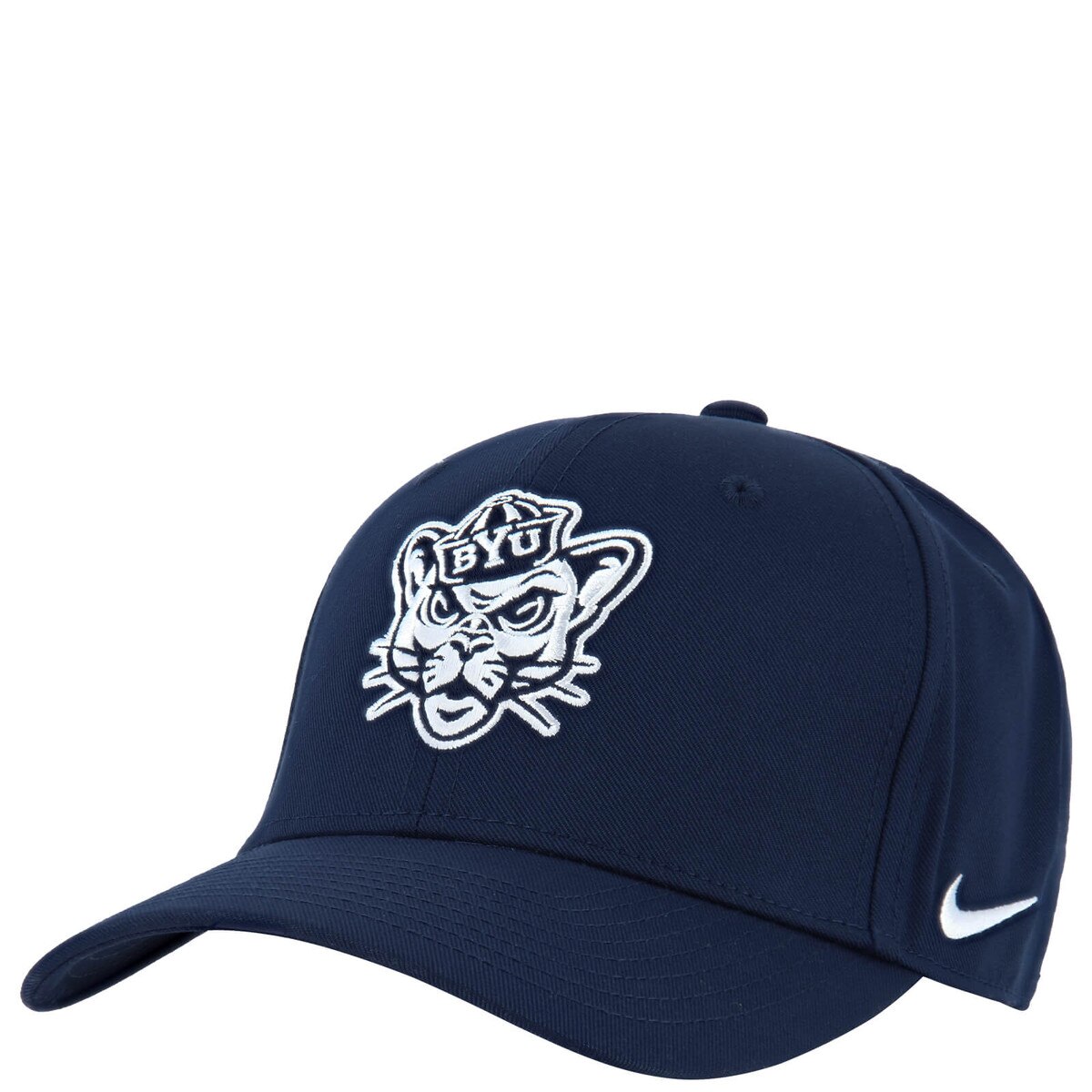 Celebrate a classic era of BYU history with this Nike hat featuring the throwback Sailor Cougar logo. The iconic mascot is captured in crisp embroidery on a modern, structured polyester cap. It's a distinctive piece for any long-time supporter looking to showcase their enduring team spirit.