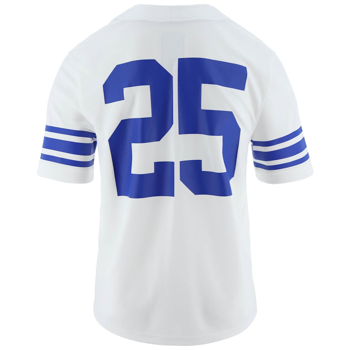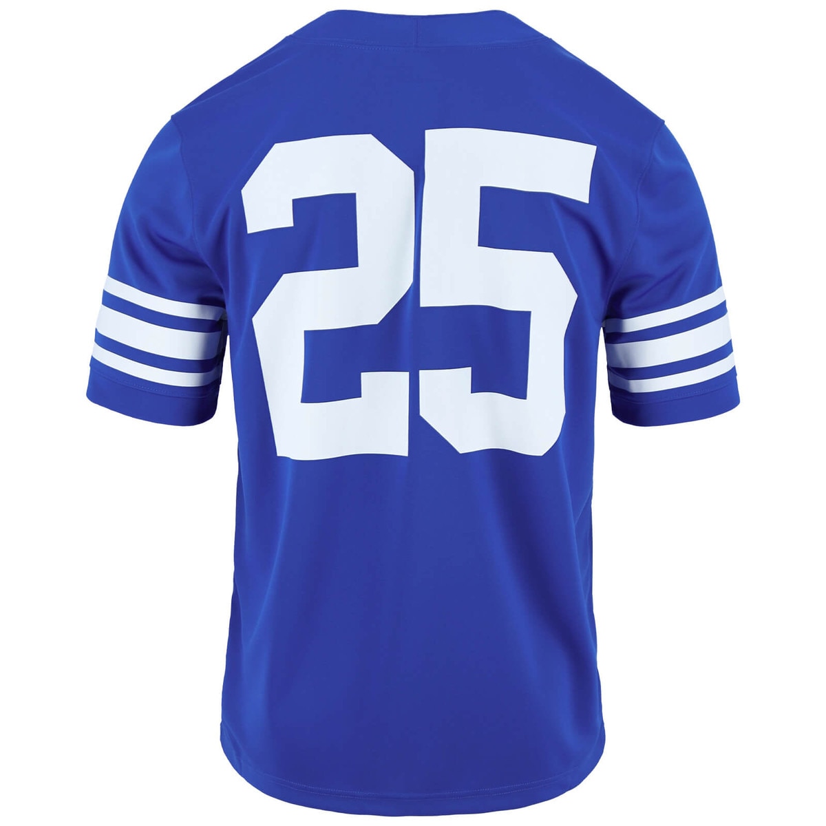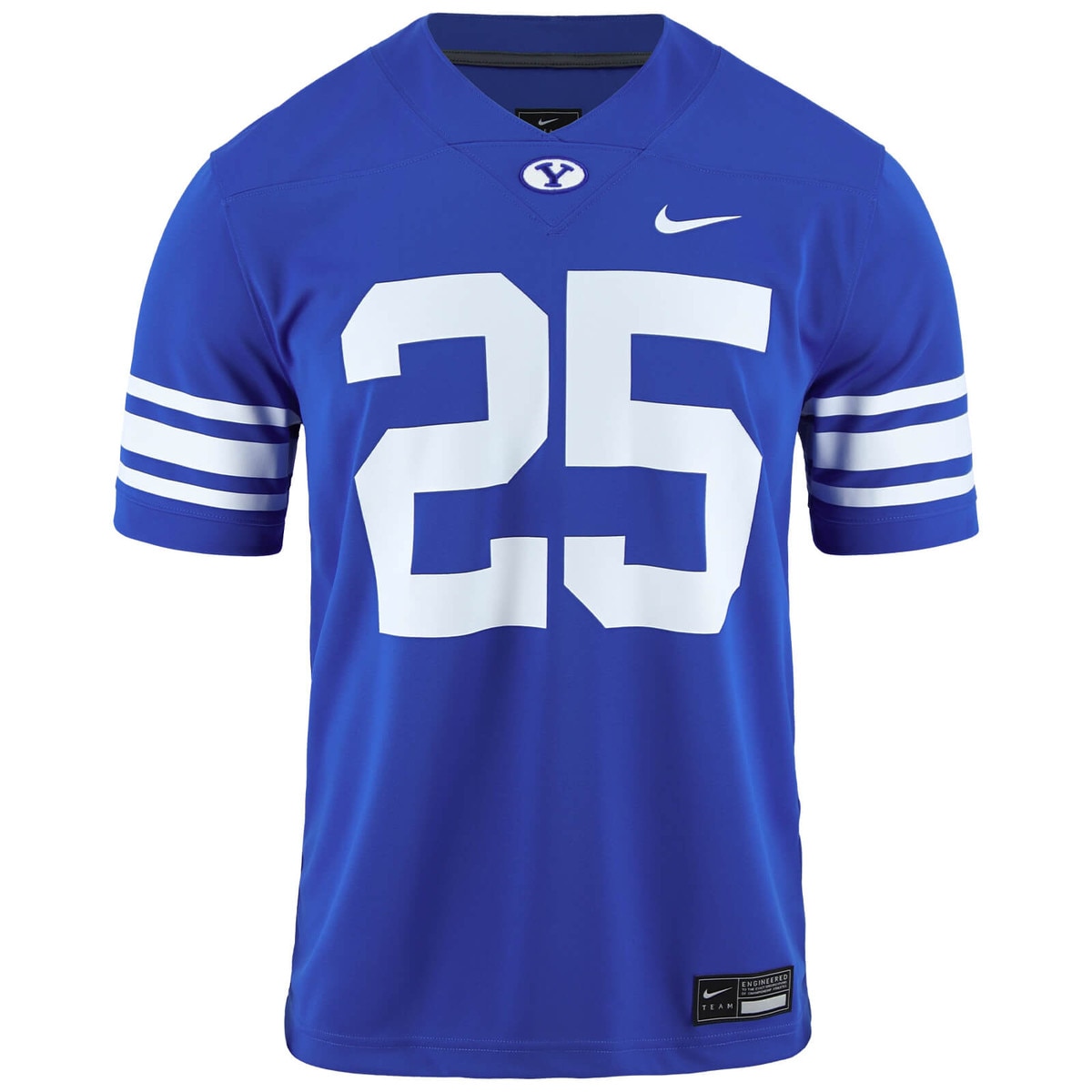 Show your Cougar pride with this official Nike BYU Football jersey. Made from breathable 100% polyester, it features screen-printed #25 and Oval Y logos for a bold gameday look. The classic V-neck cut makes it a standout choice for any dedicated fan.