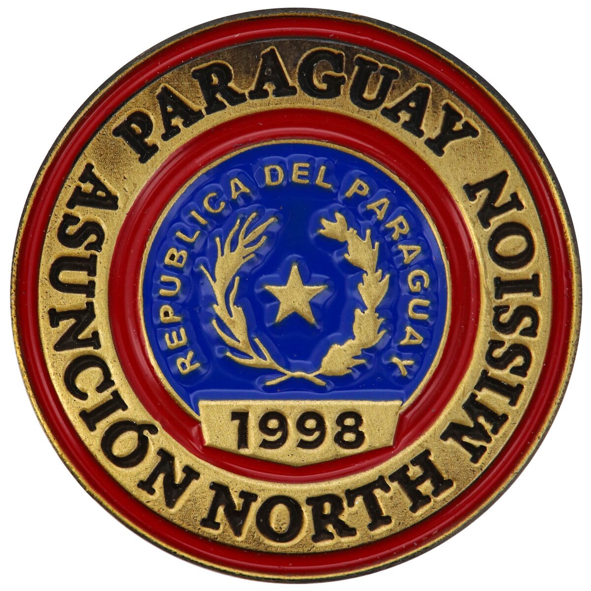 Paraguay Asuncion North Commemorative Mission Pin(0)No Reviews yet Paraguay Asuncion North Commemorative Mission Pin $12.99 Quantity discounts available QuantityPrice1 – 9$12.9910 – 24$11.0425 – 49$10.3950 +$9.74 Gift Card Amount Quantity -+ Add to Cart Details Est. 1998Solid metalGold-platedAntique rubbed finish7/8" diameterHand paintedButterfly pin backBrand: Bennett Brands Details Back DetailsEst. 1998Solid metalGold-platedAntique rubbed finish7/8" diameterHand paintedButterfly pin backBrand: Bennett BrandsSee MoreSee Less Reviews 0 Back Ratings & ReviewsNo reviews availableBe the first to Write a Review