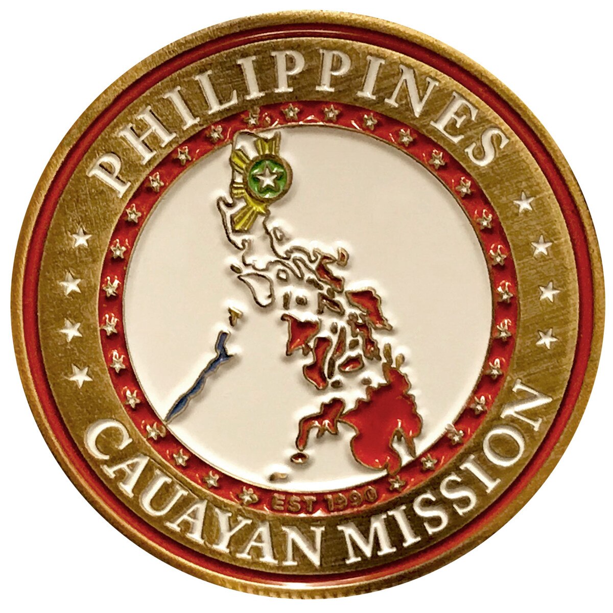 Philippines Cauayan Commemorative Mission Coin(0)No Reviews yet Philippines Cauayan Commemorative Mission Coin $16.99 Quantity discounts available QuantityPrice1 – 9$16.9910 – 24$14.4425 – 49$13.5950 +$12.74 Gift Card Amount Quantity -+ Add to Cart Details Est. 1990Solid metalGold-platedAntique rubbed finish1 3/4" diameterHand paintedBrand: Bennett Brands Details Back DetailsEst. 1990Solid metalGold-platedAntique rubbed finish1 3/4" diameterHand paintedBrand: Bennett BrandsSee MoreSee Less Reviews 0 Back Ratings & ReviewsNo reviews availableBe the first to Write a Review