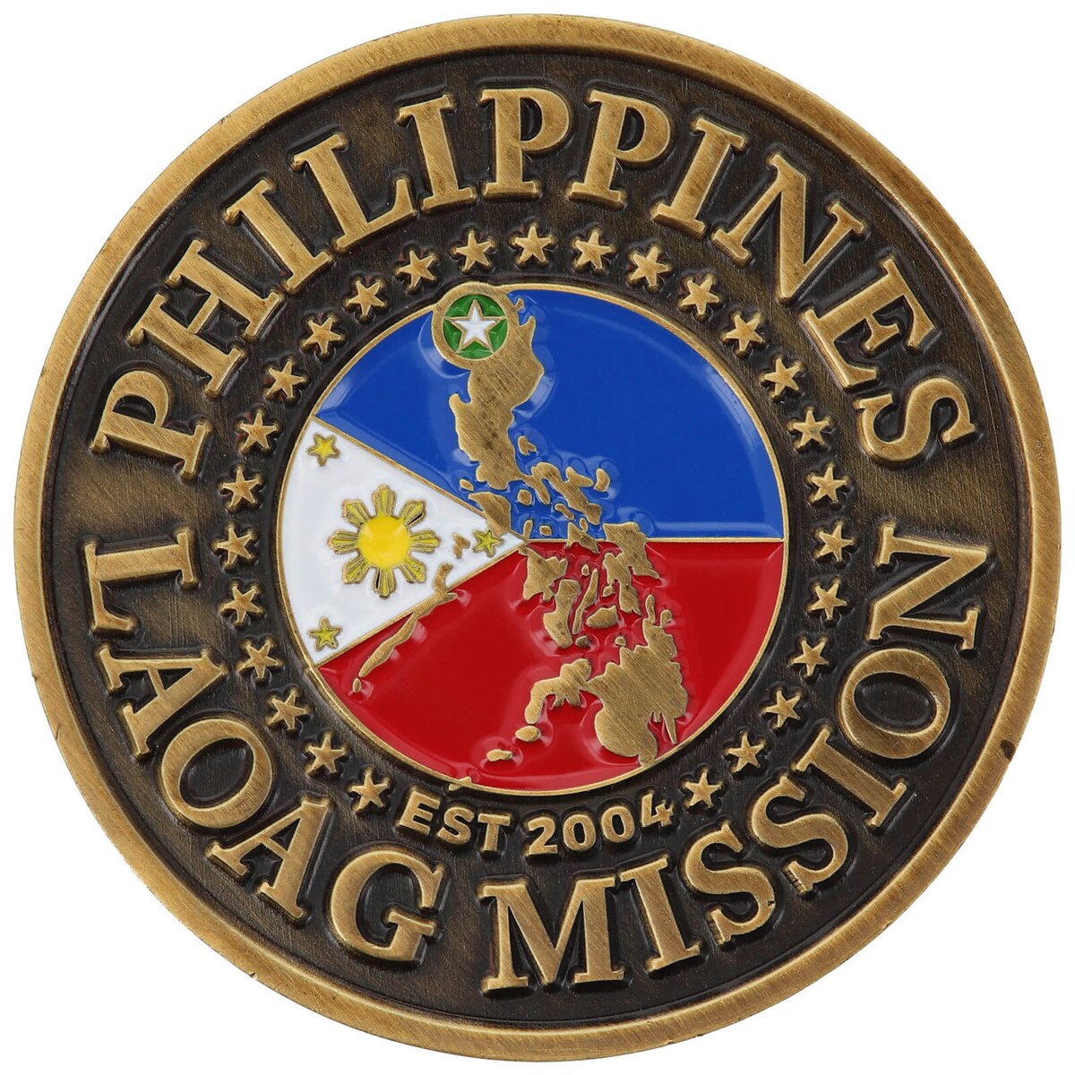 Philippines Laoag Commemorative Mission Coin(0)No Reviews yet Philippines Laoag Commemorative Mission Coin $16.99 Quantity discounts available QuantityPrice1 – 9$16.9910 – 24$14.4425 – 49$13.5950 +$12.74 Gift Card Amount Quantity -+ Add to Cart Details Est. 2004Solid metalGold-platedAntique rubbed finish1 3/4" diameterHand paintedBrand: Bennett Brands Details Back DetailsEst. 2004Solid metalGold-platedAntique rubbed finish1 3/4" diameterHand paintedBrand: Bennett BrandsSee MoreSee Less Reviews 0 Back Ratings & ReviewsNo reviews availableBe the first to Write a Review