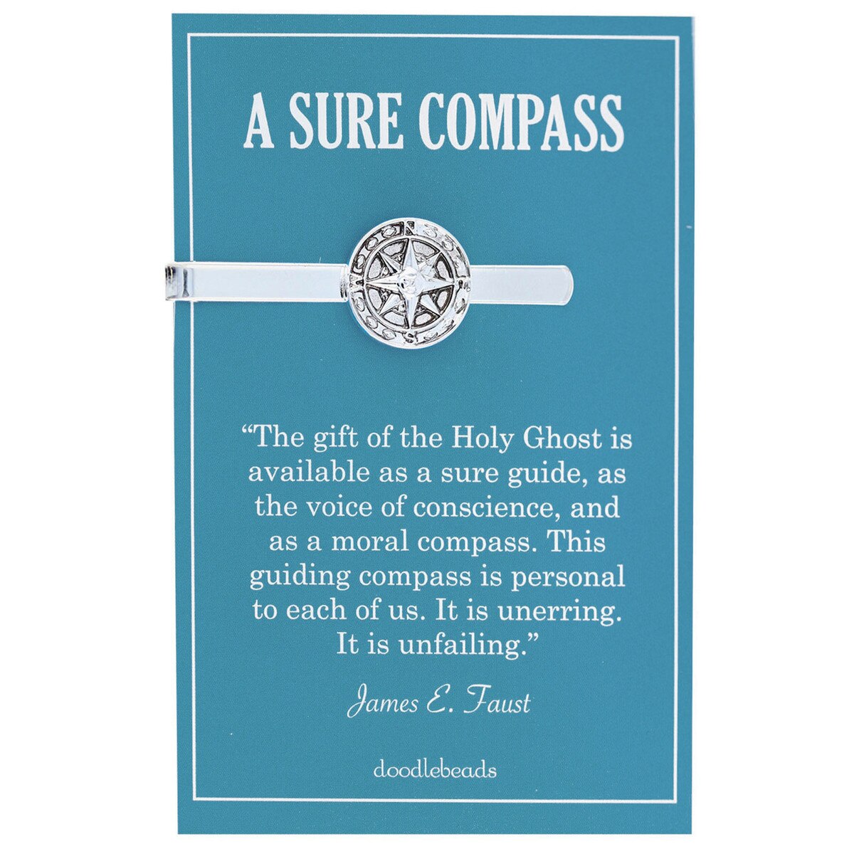 Sure Compass Tie Bar(0)No Reviews yet Sure Compass Tie Bar $9.99 Quantity discounts available QuantityPrice1 – 9$9.9910 – 24$8.4925 – 49$7.9950 +$7.49 Gift Card Amount Quantity -+ Add to Cart Details Card: "The gift of the Holy Ghost is available as a sure guide, as the voice of conscience, and as a moral compass. This guiding compass is personal t... Details Back DetailsCard: "The gift of the Holy Ghost is available as a sure guide, as the voice of conscience, and as a moral compass. This guiding compass is personal to each of us. It is unerring. It is unfailing" - James E. FaustCompass tie barSilver finishBrand: Doodle BeadsApprox 2"See MoreSee Less Reviews 0 Back Ratings & ReviewsNo reviews availableBe the first to Write a Review