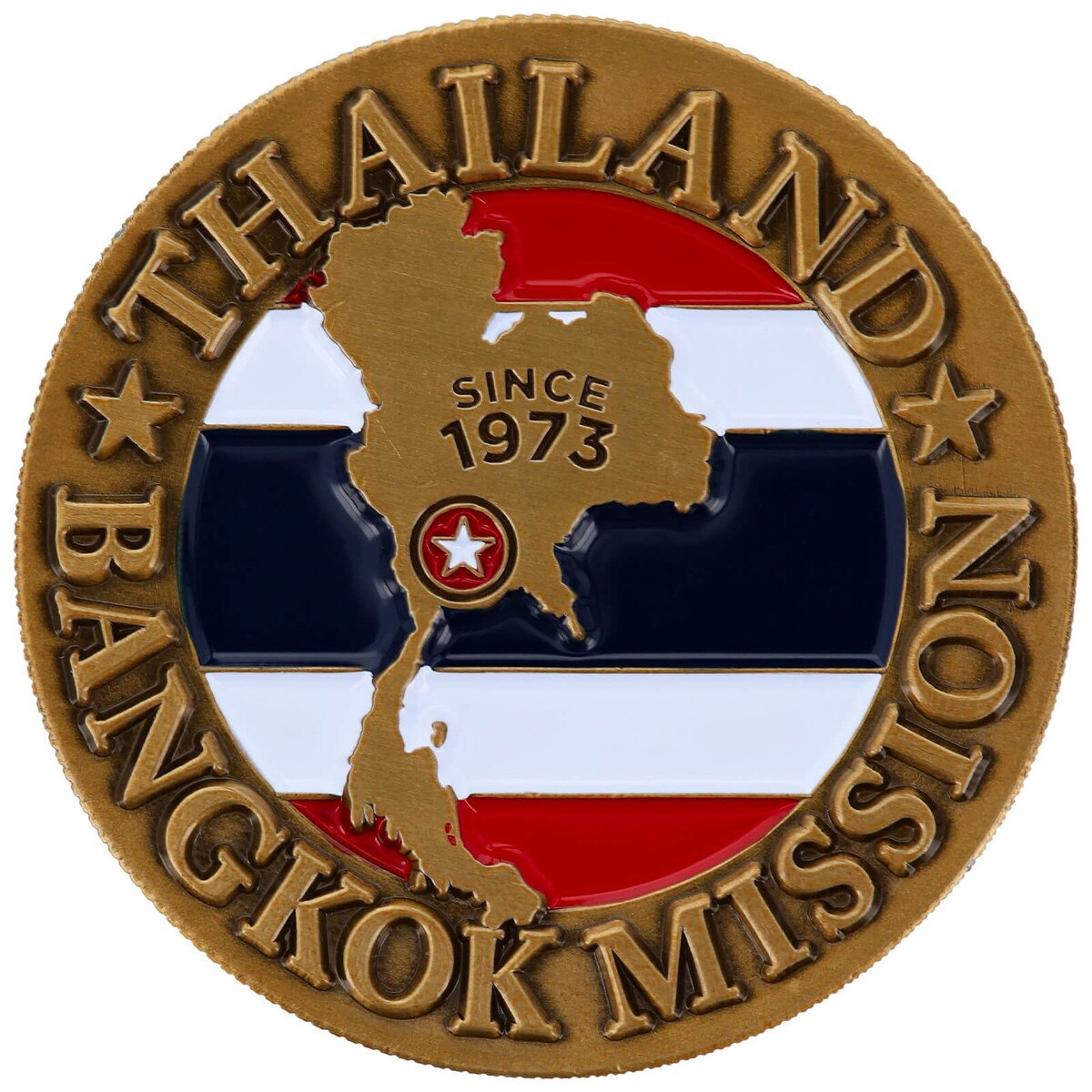 Thailand Bangkok Commemorative Mission Coin(0)No Reviews yet Thailand Bangkok Commemorative Mission Coin $16.99 Quantity discounts available QuantityPrice1 – 9$16.9910 – 24$14.4425 – 49$13.5950 +$12.74 Gift Card Amount Quantity -+ Add to Cart Details Est. 1973Solid metalGold-platedAntique rubbed finish1 3/4" diameterHand paintedBrand: Bennett Brands Details Back DetailsEst. 1973Solid metalGold-platedAntique rubbed finish1 3/4" diameterHand paintedBrand: Bennett BrandsSee MoreSee Less Reviews 0 Back Ratings & ReviewsNo reviews availableBe the first to Write a Review