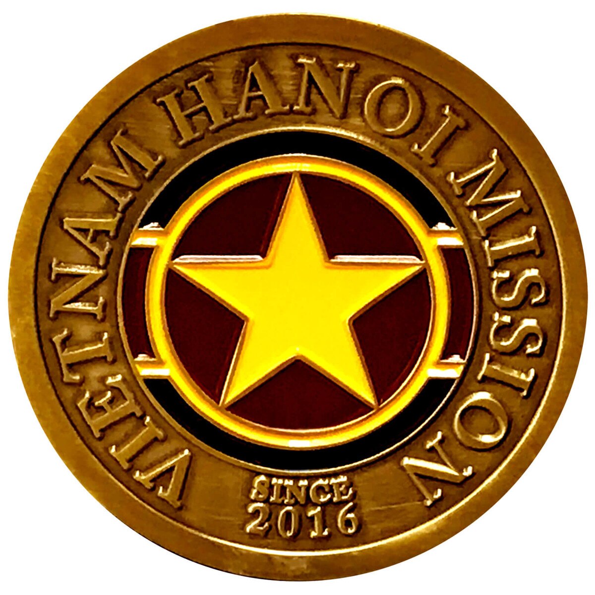 Vietnam Hanoi Commemorative Mission Coin(0)No Reviews yet Vietnam Hanoi Commemorative Mission Coin $16.99 Quantity discounts available QuantityPrice1 – 9$16.9910 – 24$14.4425 – 49$13.5950 +$12.74 Gift Card Amount Quantity -+ Add to Cart Details Est. 2016Solid metalGold-platedAntique rubbed finish1 3/4" diameterHand paintedBrand: Bennett Brands Details Back DetailsEst. 2016Solid metalGold-platedAntique rubbed finish1 3/4" diameterHand paintedBrand: Bennett BrandsSee MoreSee Less Reviews 0 Back Ratings & ReviewsNo reviews availableBe the first to Write a Review