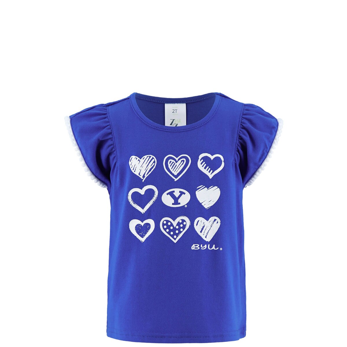 Let your littlest fan show their Cougar spirit in this charming Zoozatz tee. The playful design combines screen-printed BYU logos with sweet hearts, while the darling ruffle sleeves add a touch of fun. Its soft, stretchy cotton-blend fabric ensures all-day comfort.